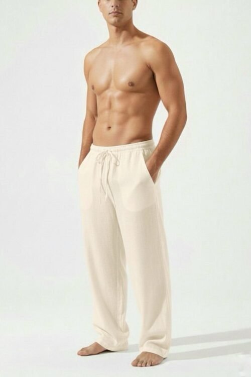 “Stay cool and comfortable in our Linen Relax Fit Pants in Cream. Perfect for summer, these breathable trousers offer a relaxed fit and effortless style.”