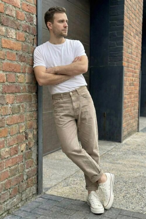 Streetwear Momfit- Khaki Elevate your everyday wardrobe with these premium Khaki Mom fit jeans. Crafted from durable cotton denim, these versatile trousers feature a comfortable high-rise waist.