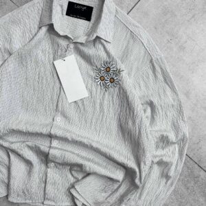 A perfect balance of minimal design and subtle detail, this shirt features fine vertical stripes complemented by elegant floral embroidery for a soft yet distinctive look. The dropshoulder fit adds a relaxed, modern edge, while the white base keeps it clean and versatile. Ideal for everyday wear, this piece brings together comfort, craftsmanship, and understated…