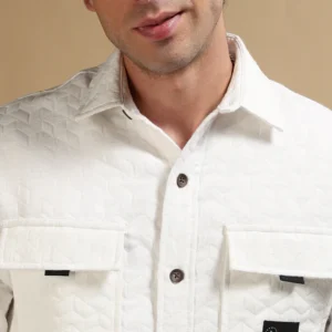 Poly Cotton Slim Fit Self-Designed Shirt White Make a refined statement with this white slim-fit shirt, crafted from a smooth poly cotton blend that ensures comfort and durability. Featuring subtle blue self-designed geometric motifs, it strikes the perfect balance between minimal style and unique detailing. With full sleeves and a clean, no-pocket design, this shirt…