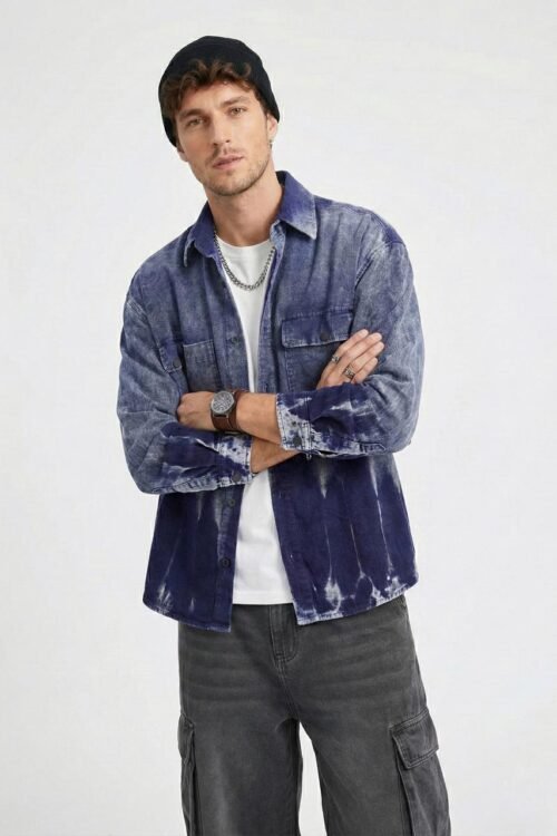 “Upgrade your summer style with our Blue Diagonal Tie-Dye Shirt. Crafted from breathable fabric with a unique artistic blue stripe, this relaxed-fit button-down is perfect for casual wear.”