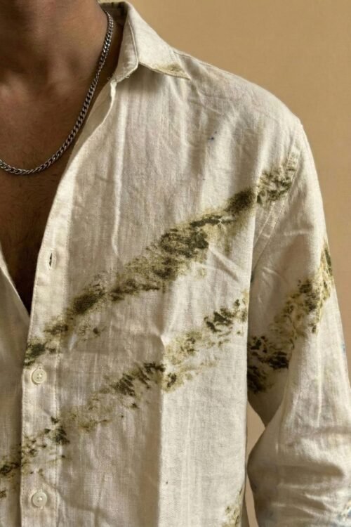 “Upgrade your summer style with our Brown Diagonal Tie-Dye Shirt. Crafted from breathable fabric with a unique artistic blue stripe, this relaxed-fit button-down is perfect for casual wear.”