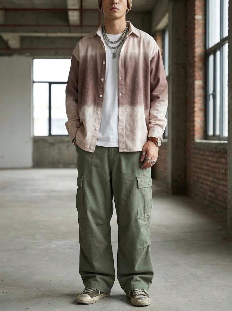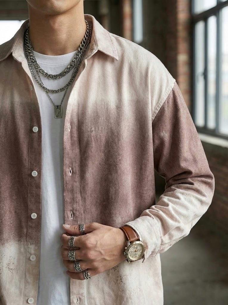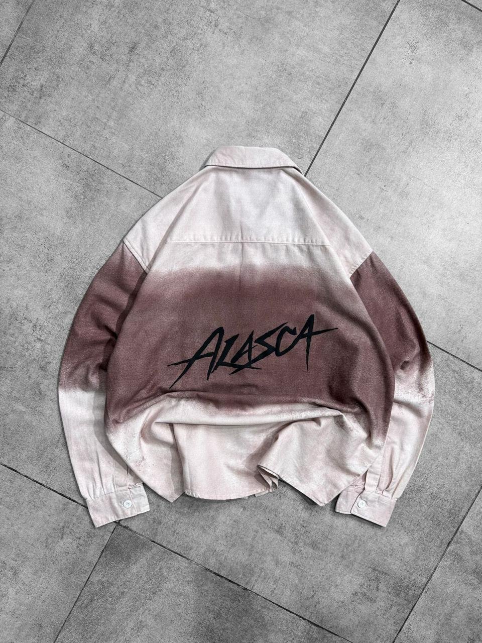 “Elevate your streetwear rotation with this oversized dip-dye button-up shirt. Featuring a unique vintage gradient wash in blue or rust and a bold, jagged ‘ALASCA’ graphic on the back, this shirt delivers a premium grunge Y2K aesthetic.”