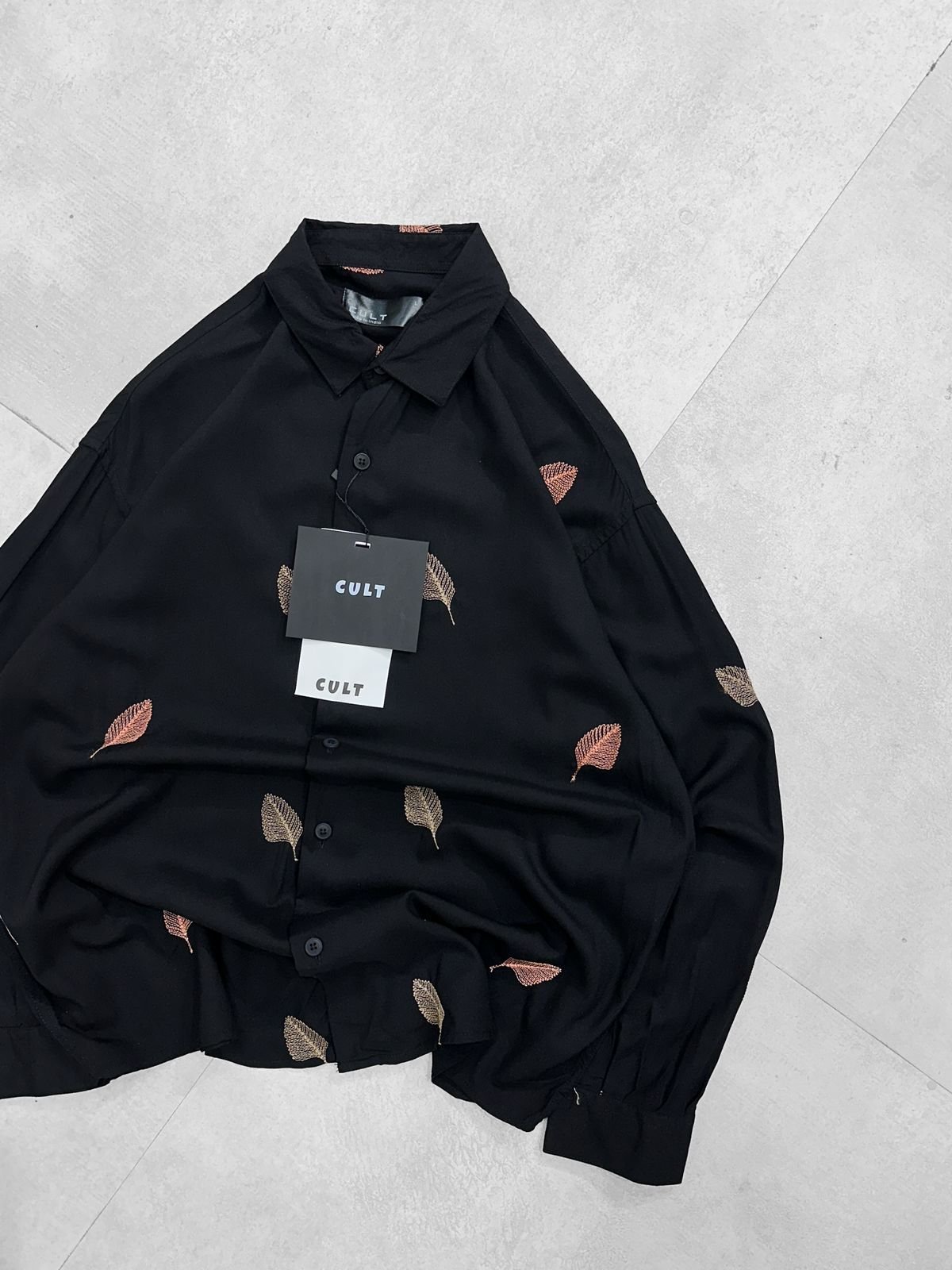 Allover Minimal Straight Leaf Embroidery Dropshoulder Shirt