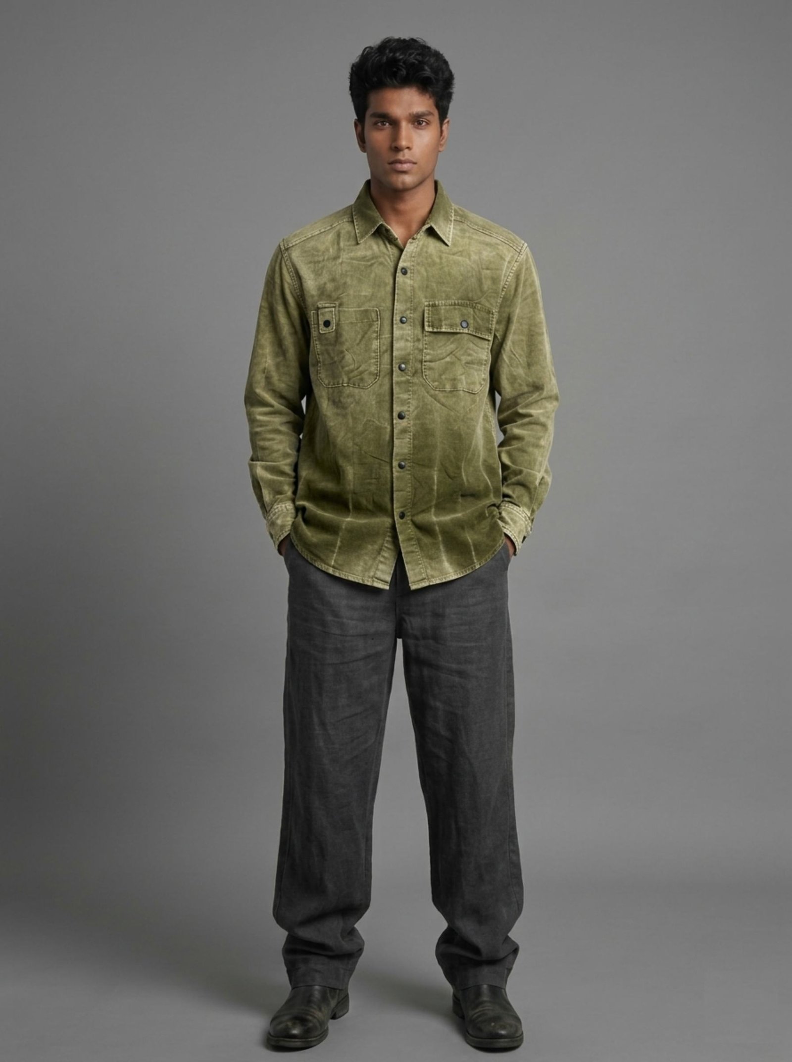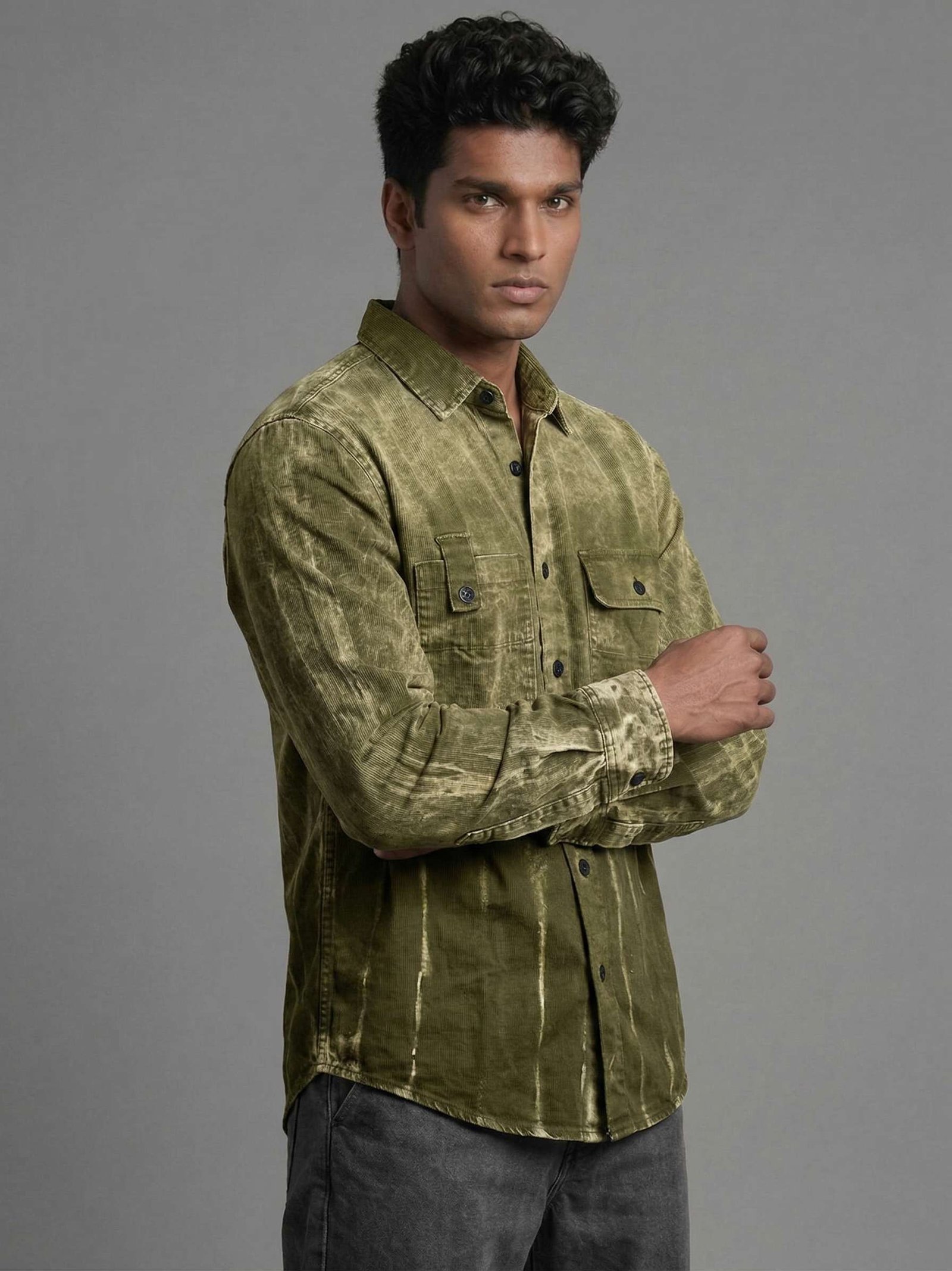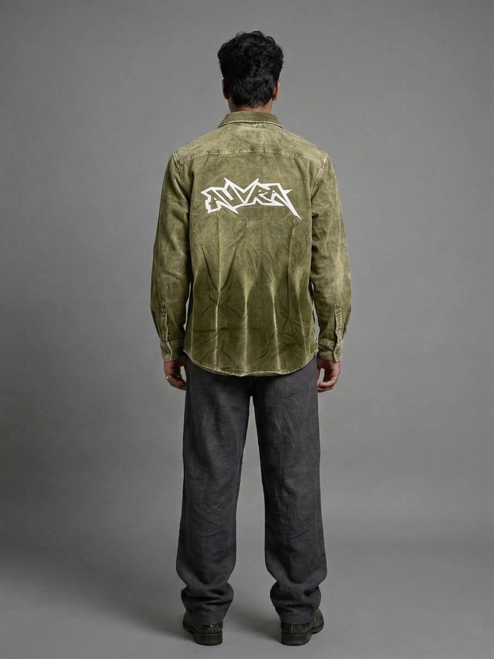 Auvra Back Printed Oversize Corduroy Shirt – Olive Green
