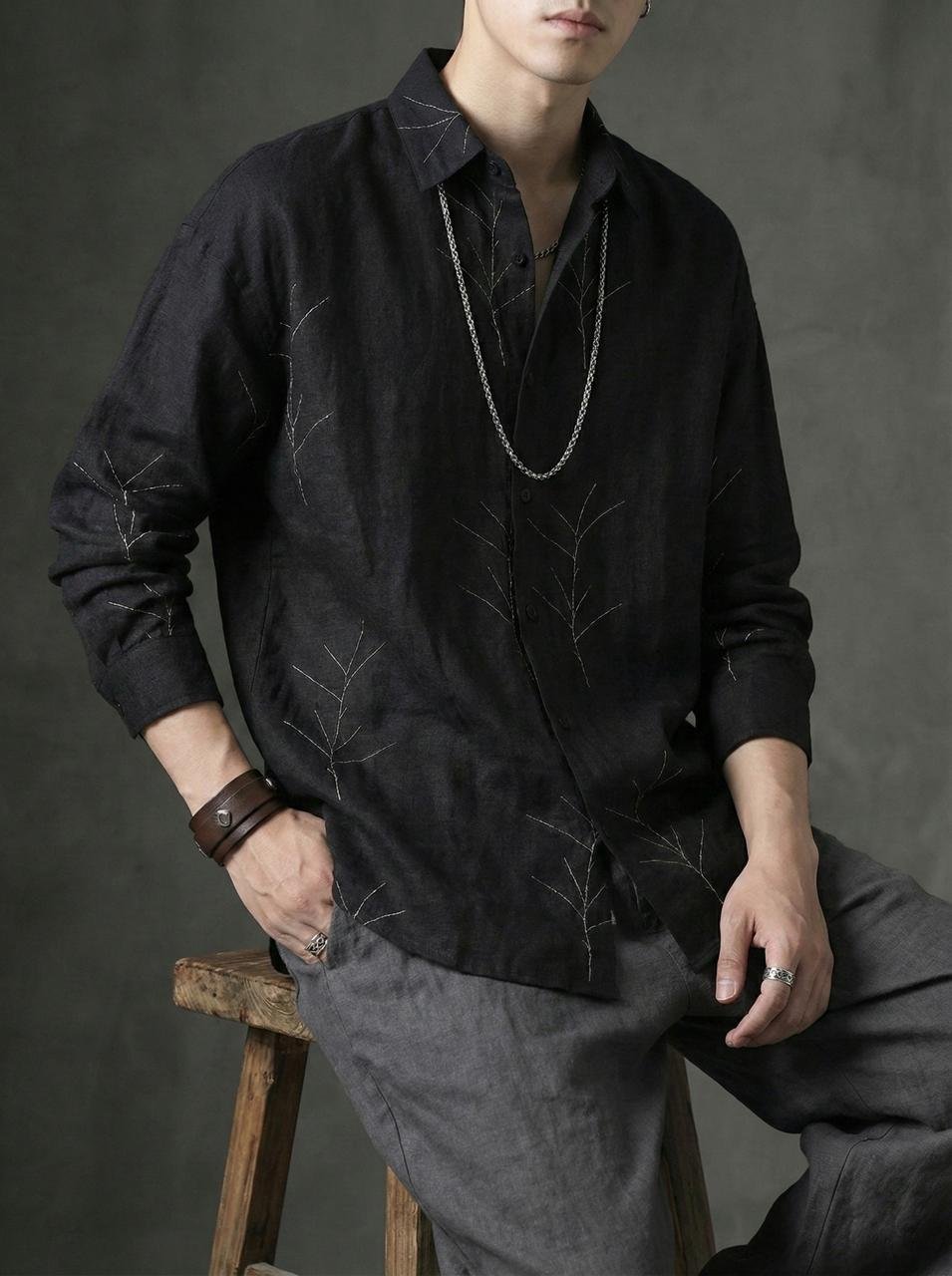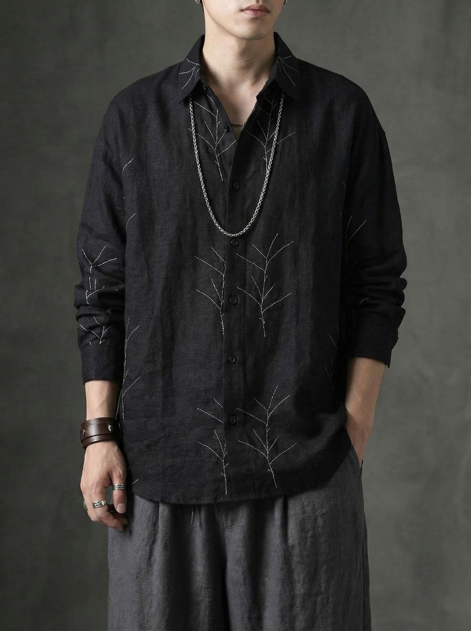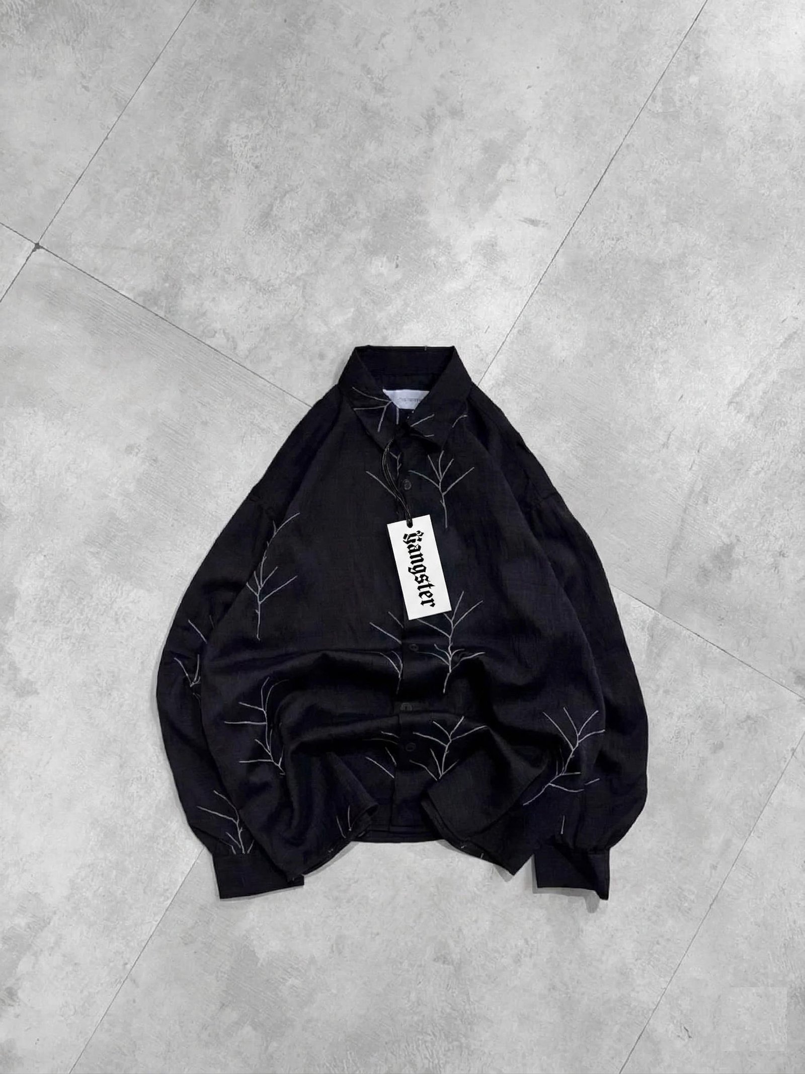 Bare Branch Embroidery Dropshoulder Shirt – Black