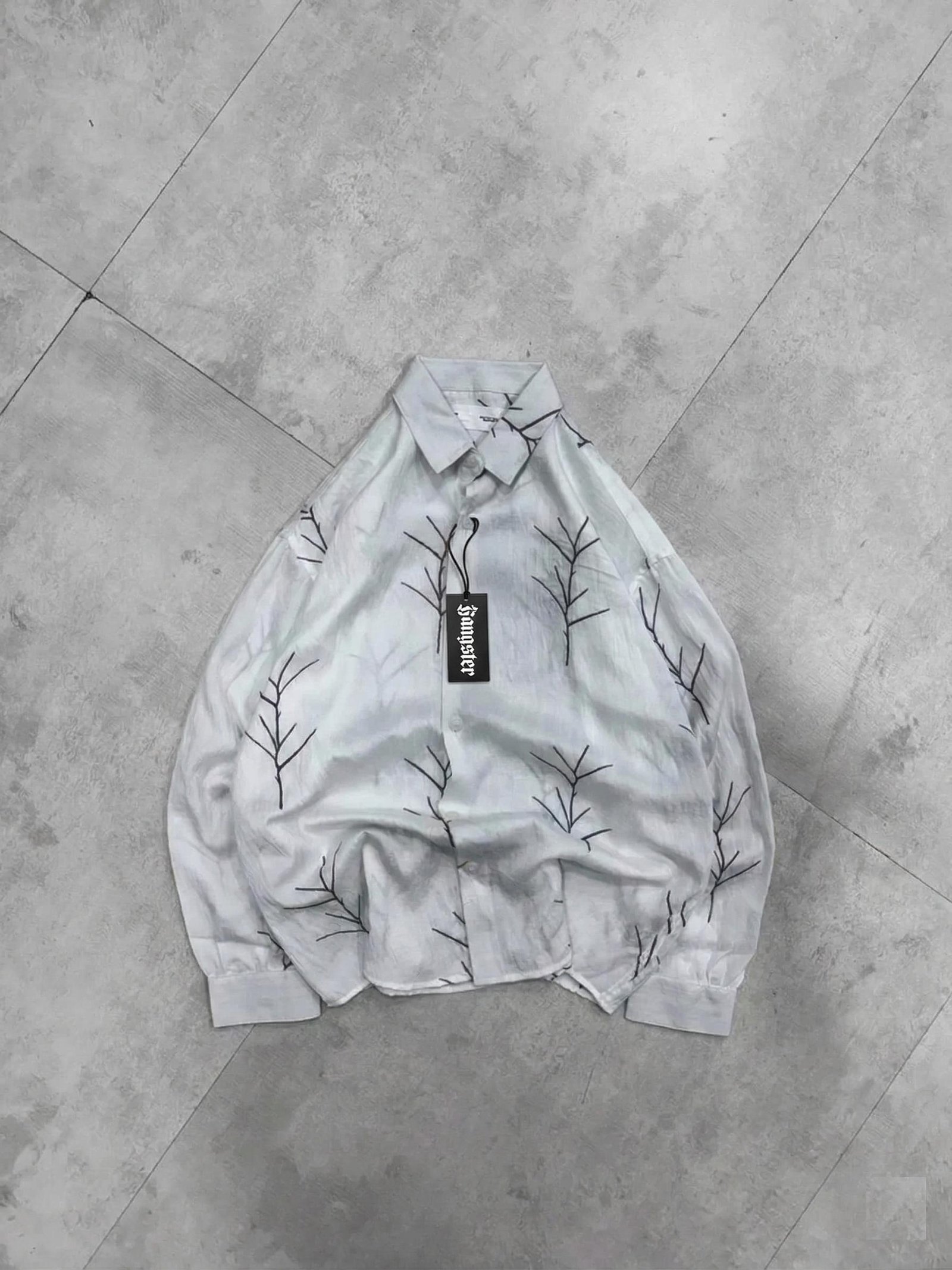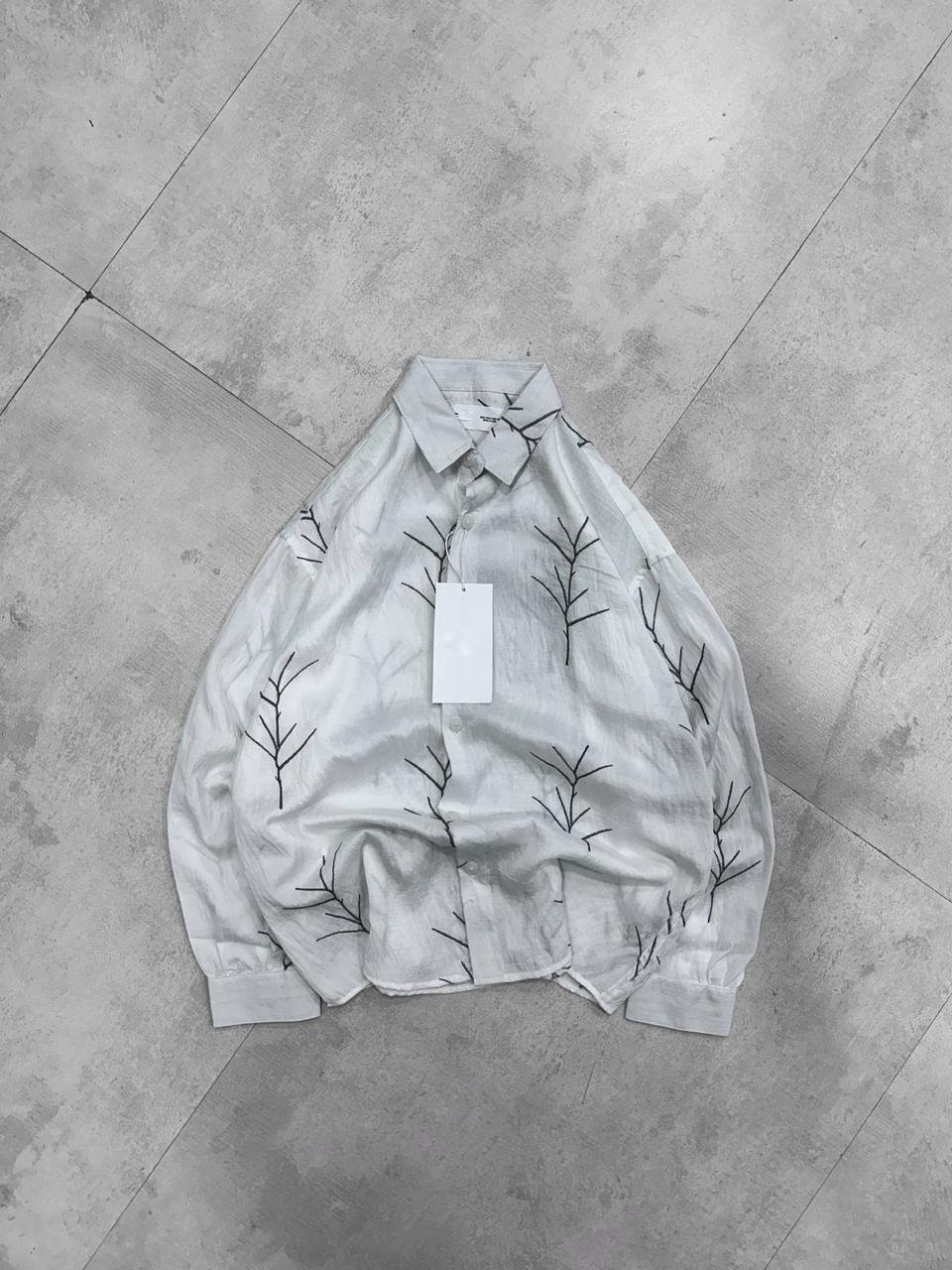 Bare Branch Embroidery Dropshoulder Shirt – White