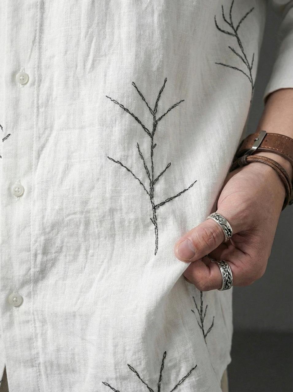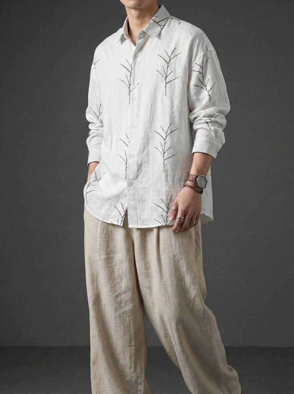 • embroidered shirt for men, white embroidery shirt, minimal embroidered shirt, dropshoulder shirt, oversized cotton shirt, designer casual shirt