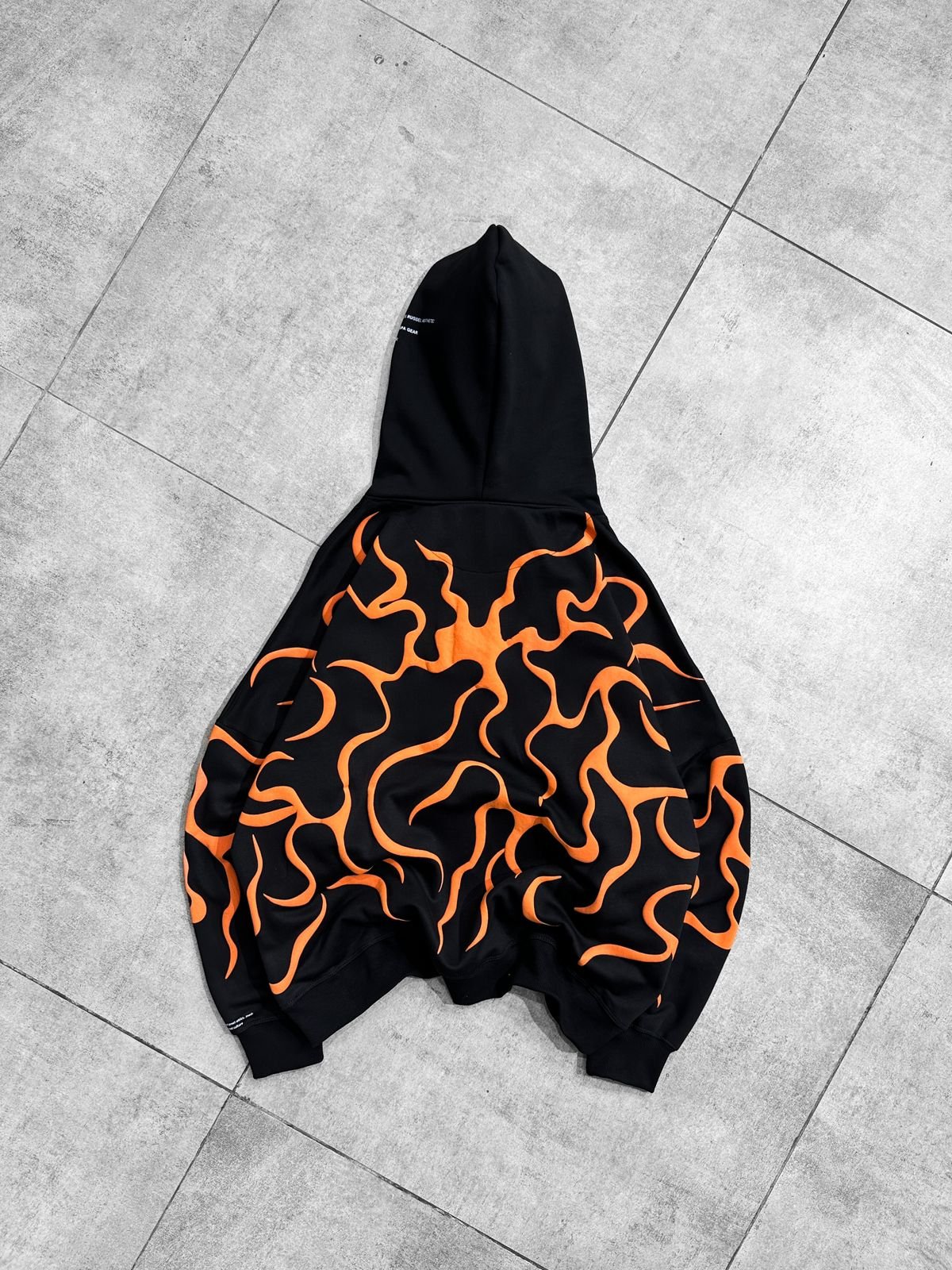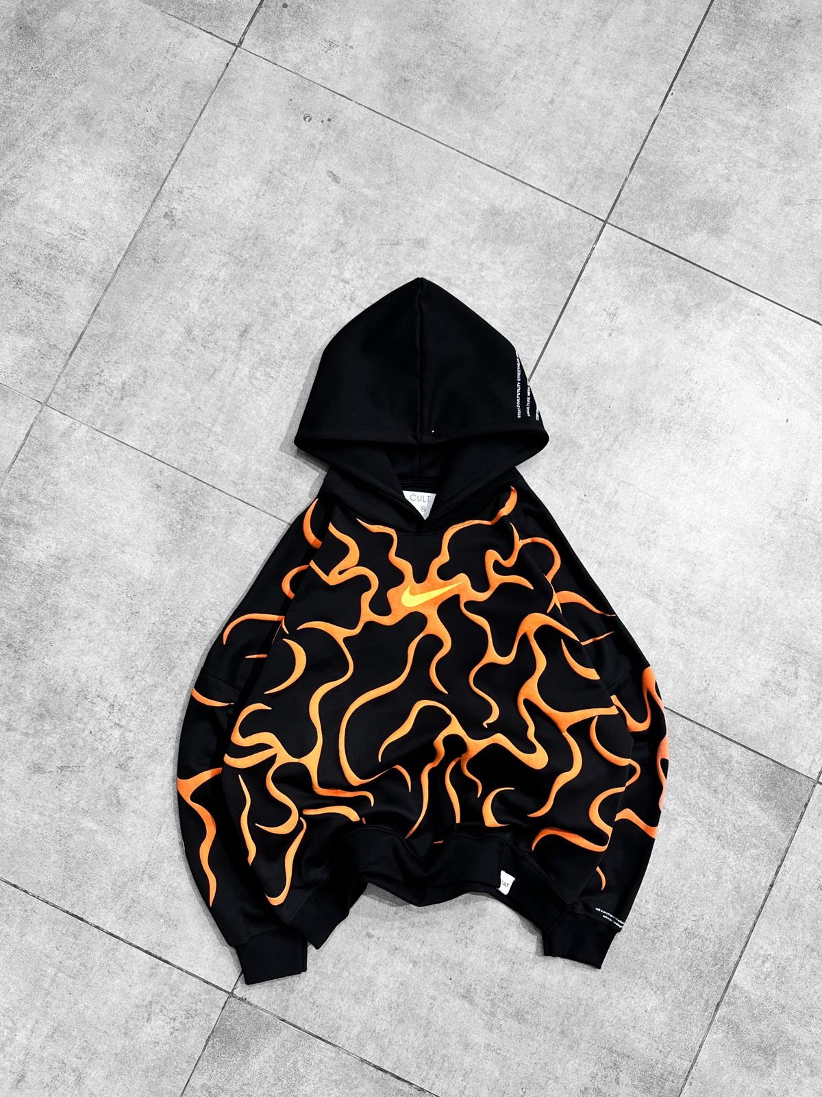 - Shop the Blaze Flow Oversize Hoodie in black with bold flame print. Premium oversized fit streetwear hoodie for men. Perfect for casual & urban wear.