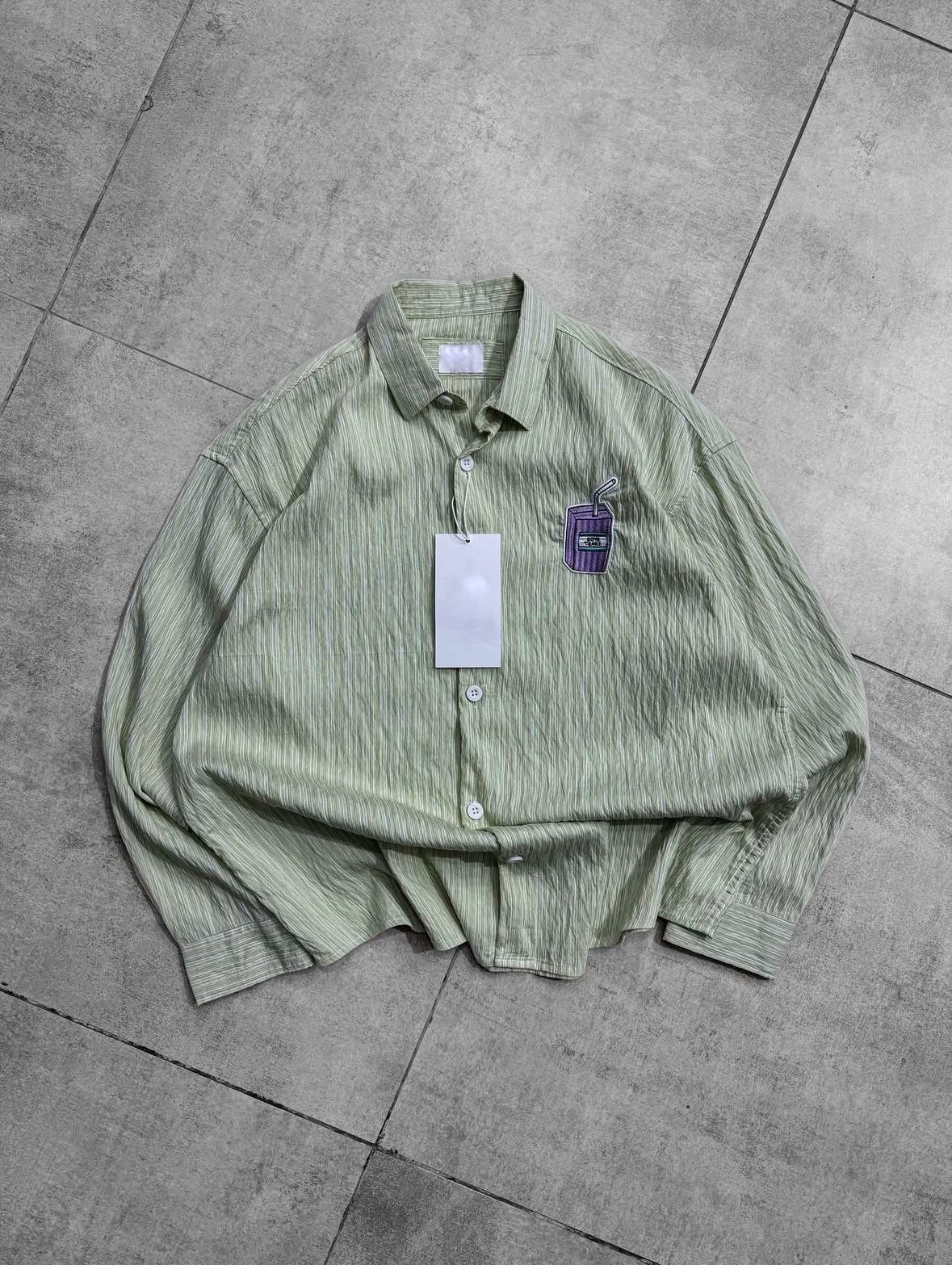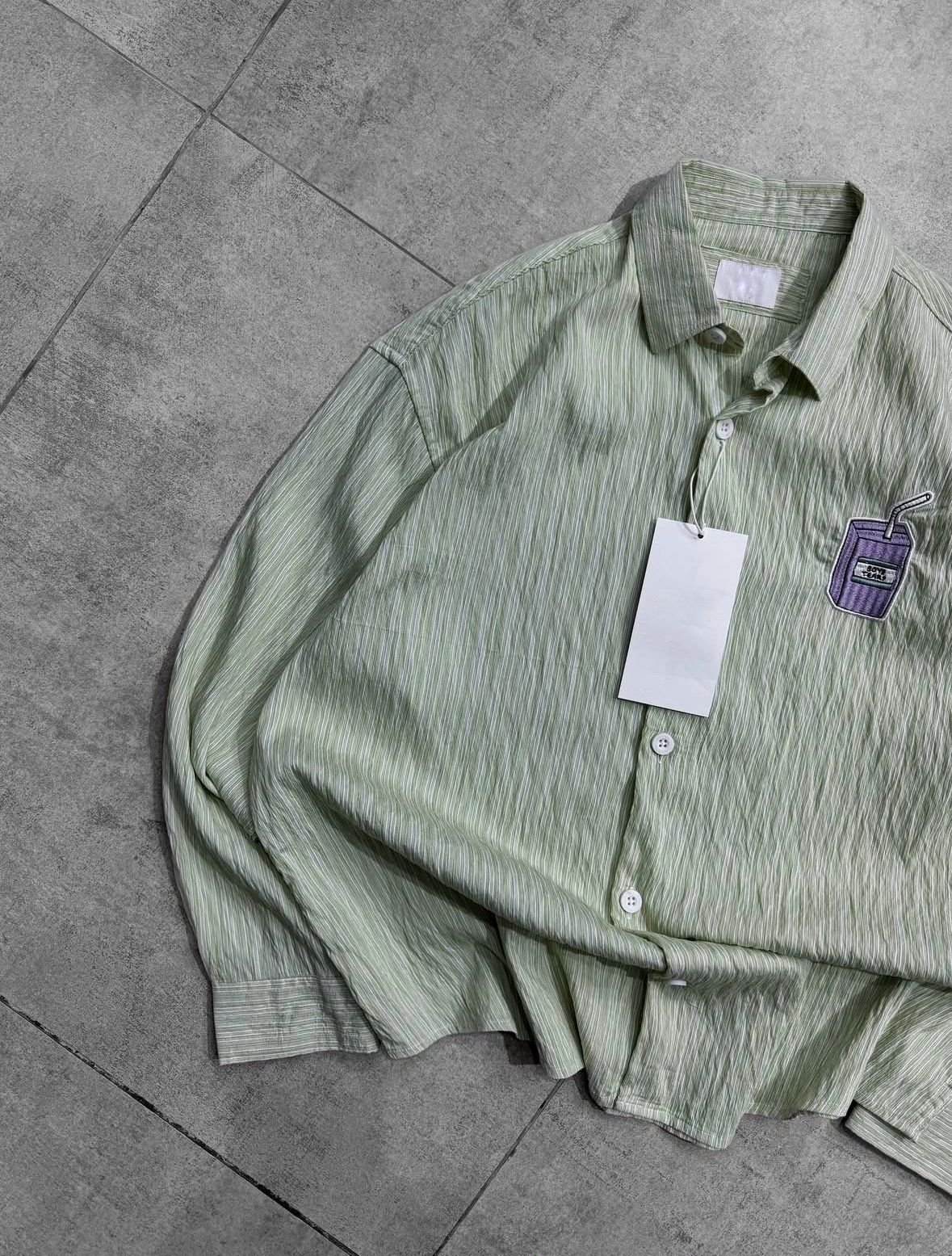 Boys Tears Front Embroidery Dropshoulder Shirt- Green Shade