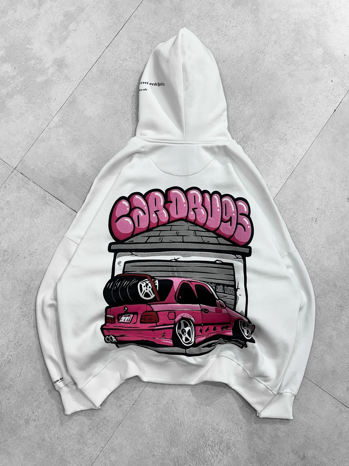Level up your street aesthetic with the Gangster “Car Drugs” Oversized Hoodie. Featuring a bold pink drift car back graphic and a heavy-drop shoulder fit. Shop now.