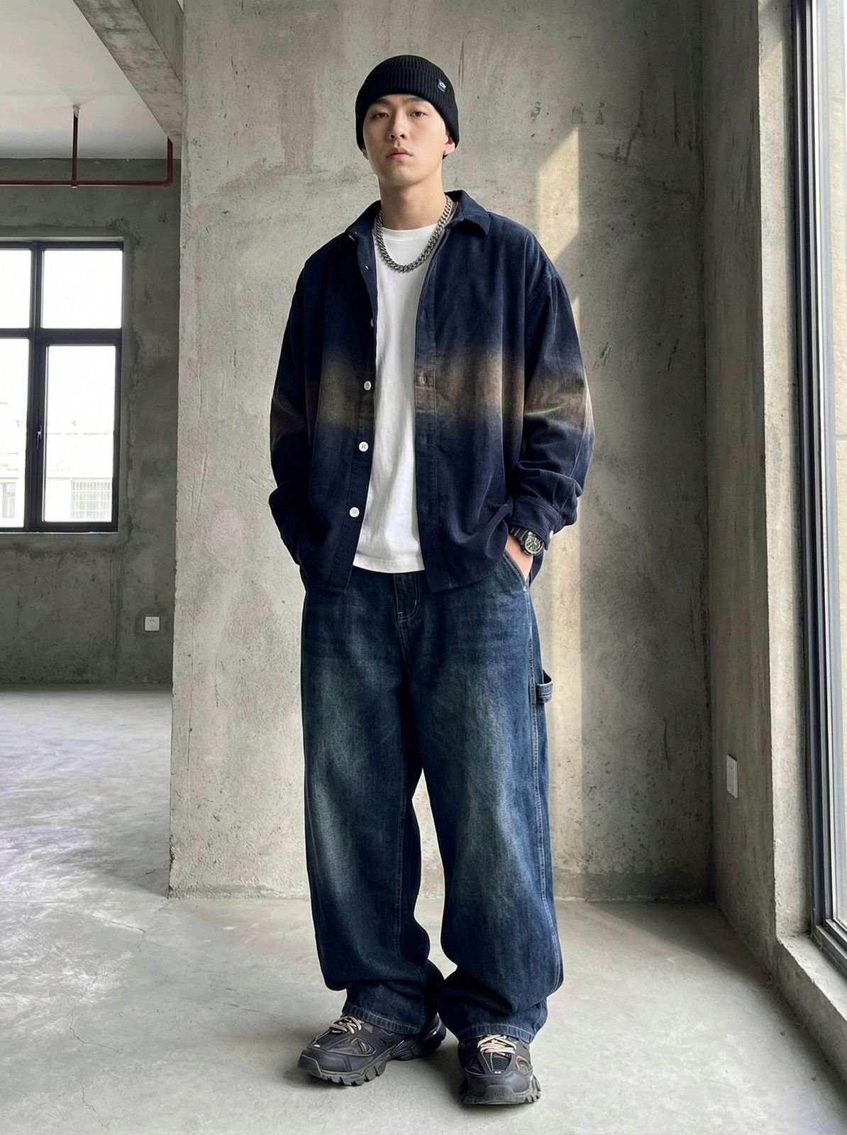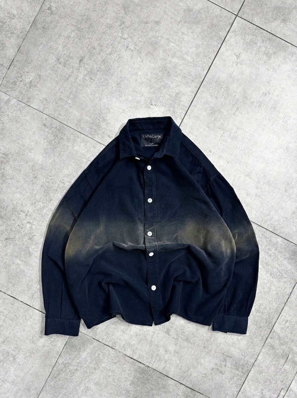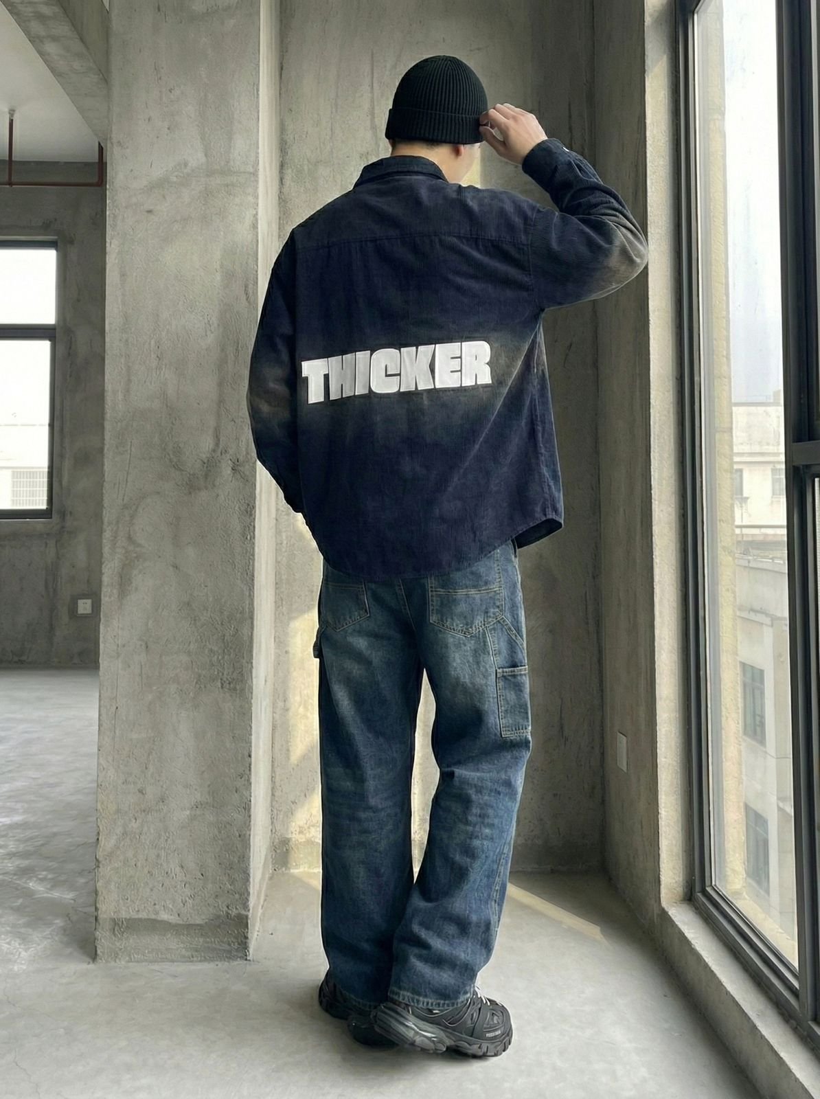 Texture meets tone. This rust-colored corduroy shirt features a seamless ombre transition and a bold back print. Heavyweight, stylish, and built for the modern wardrobe.