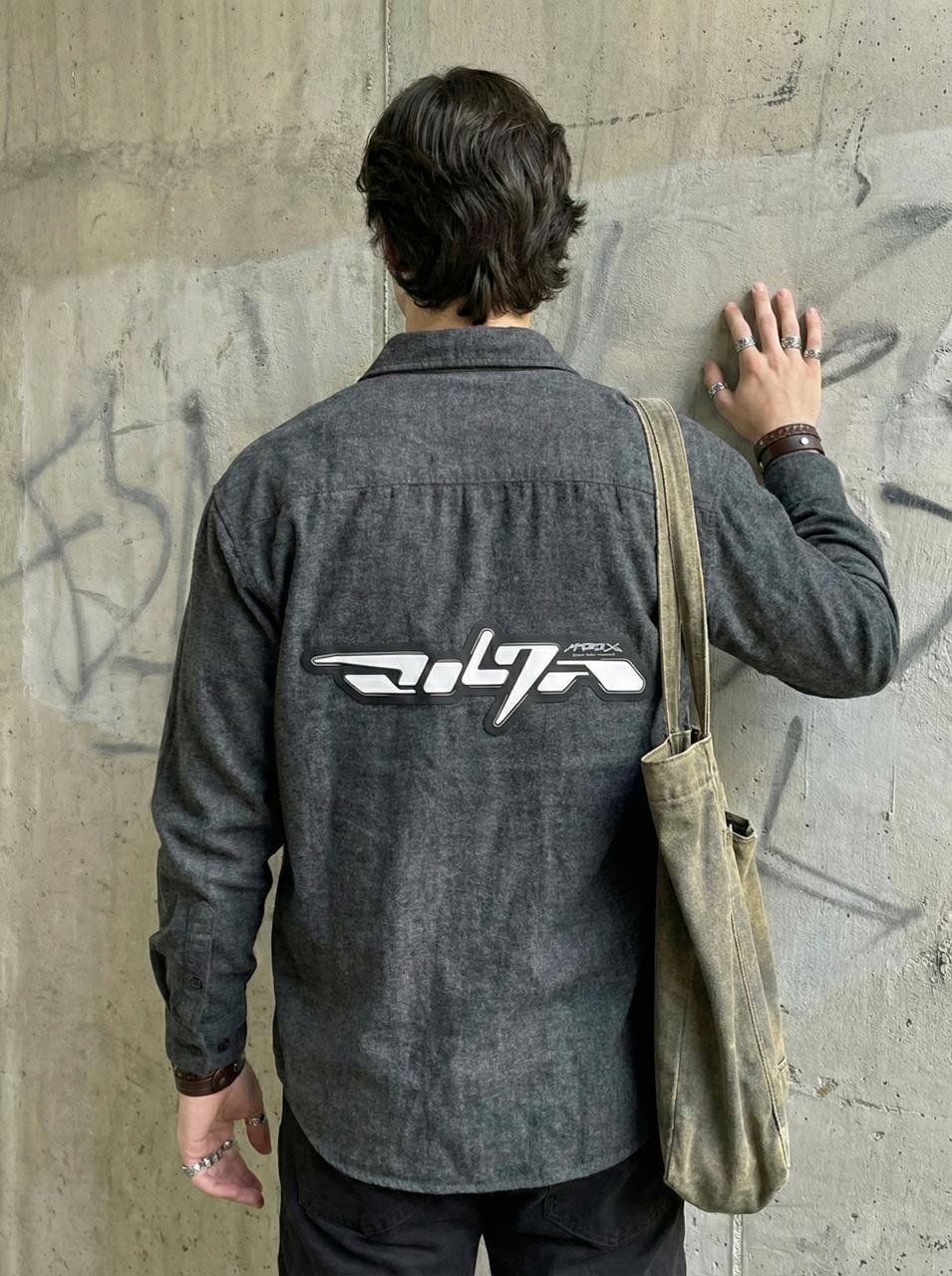 • “Elevate your streetwear rotation with this oversized Green acid-wash shirt. Features a premium washed texture, drop-shoulder fit, and a bold futuristic back graphic for a standout Y2K look.
