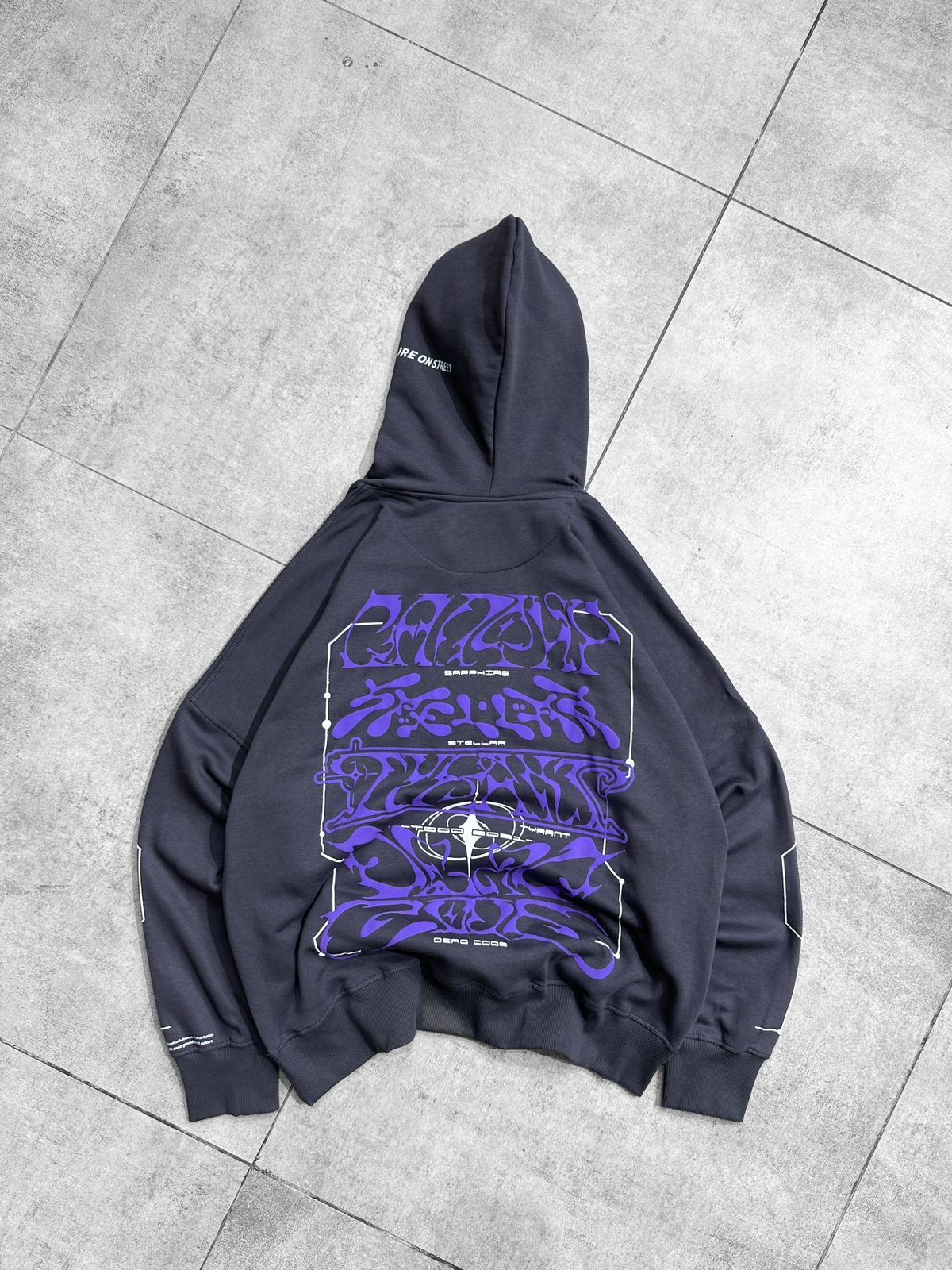 • Upgrade to the Dead Code Hoodie. 👾 Featuring a washed charcoal finish and high-density purple cyber typography. Perfect for that boxy, oversized streetwear fit.