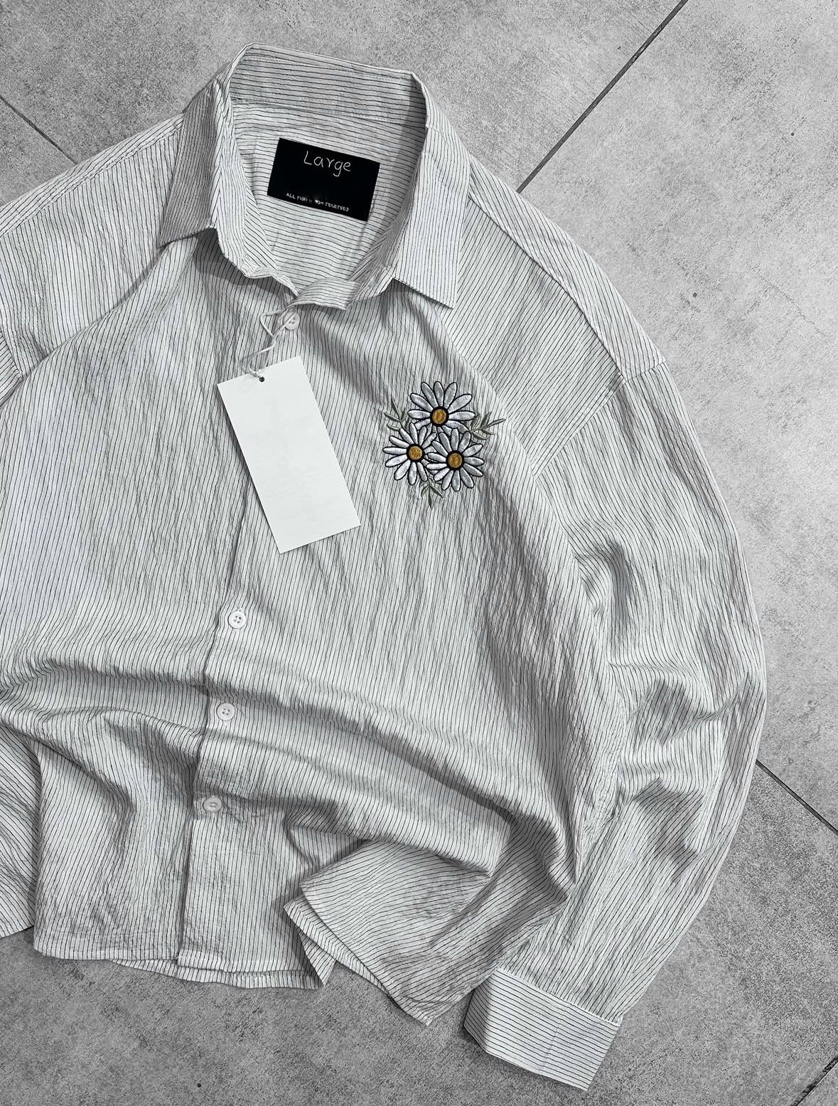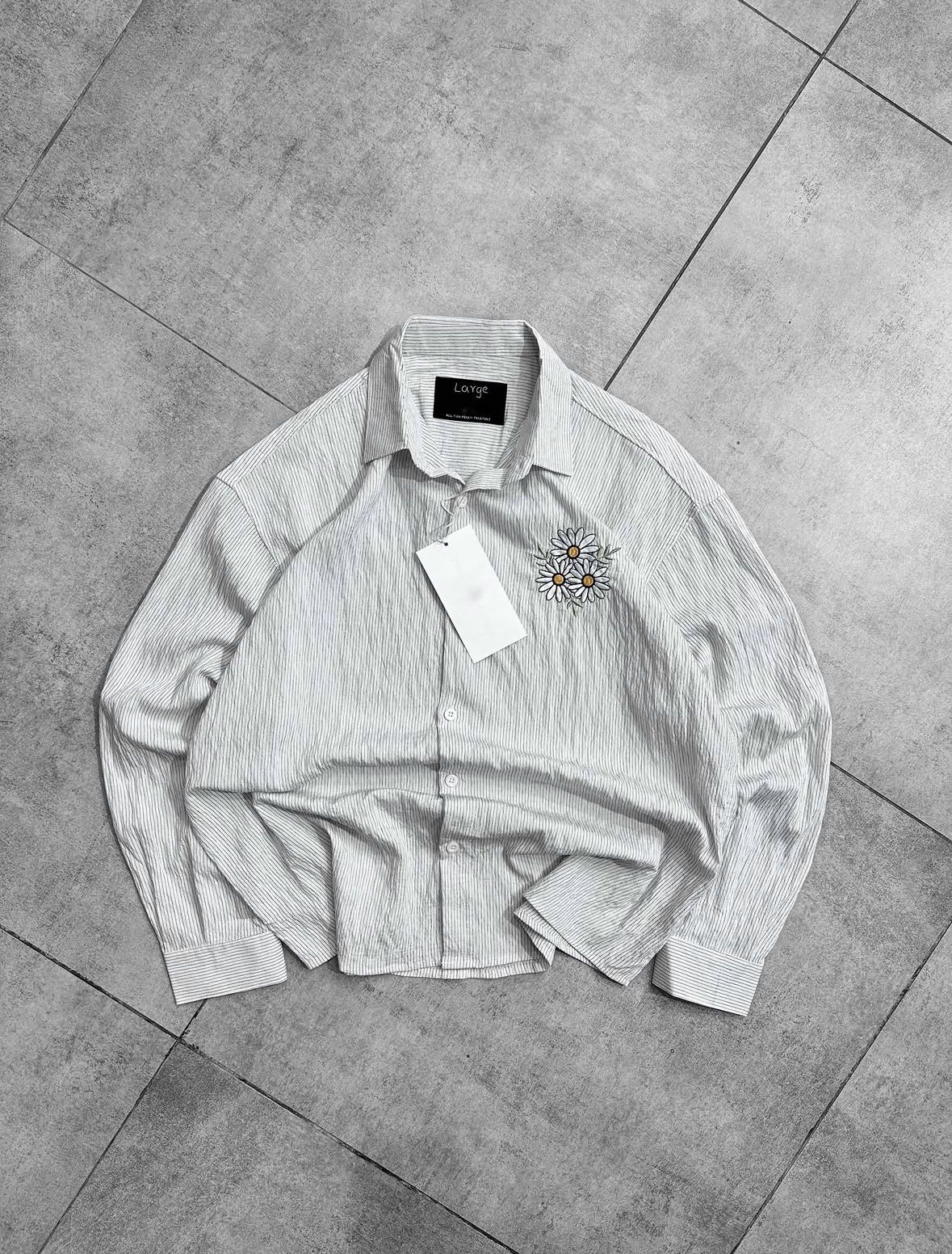 A perfect balance of minimal design and subtle detail, this shirt features fine vertical stripes complemented by elegant floral embroidery for a soft yet distinctive look. The dropshoulder fit adds a relaxed, modern edge, while the white base keeps it clean and versatile. Ideal for everyday wear, this piece brings together comfort, craftsmanship, and understated style in one refined silhouette.