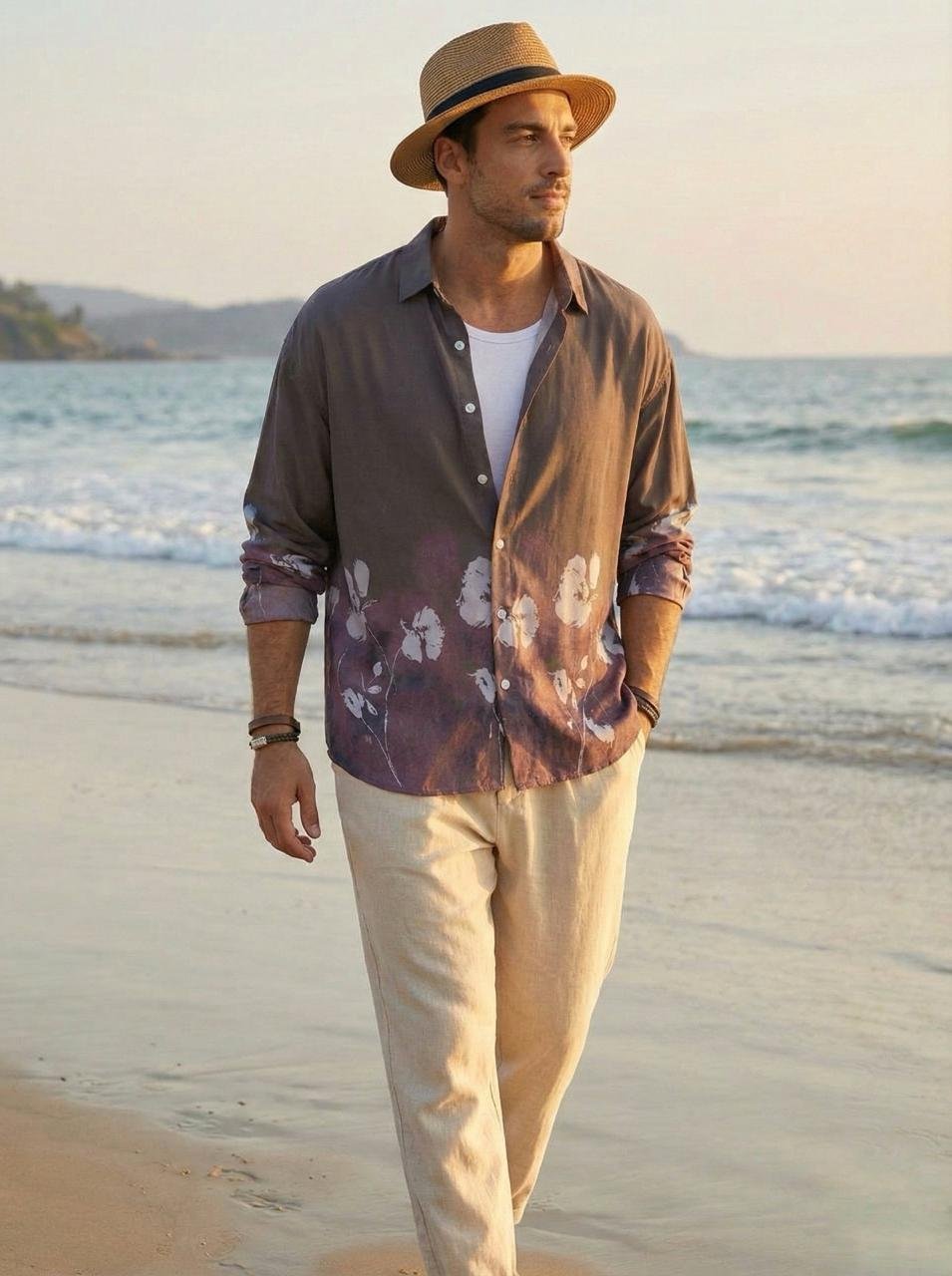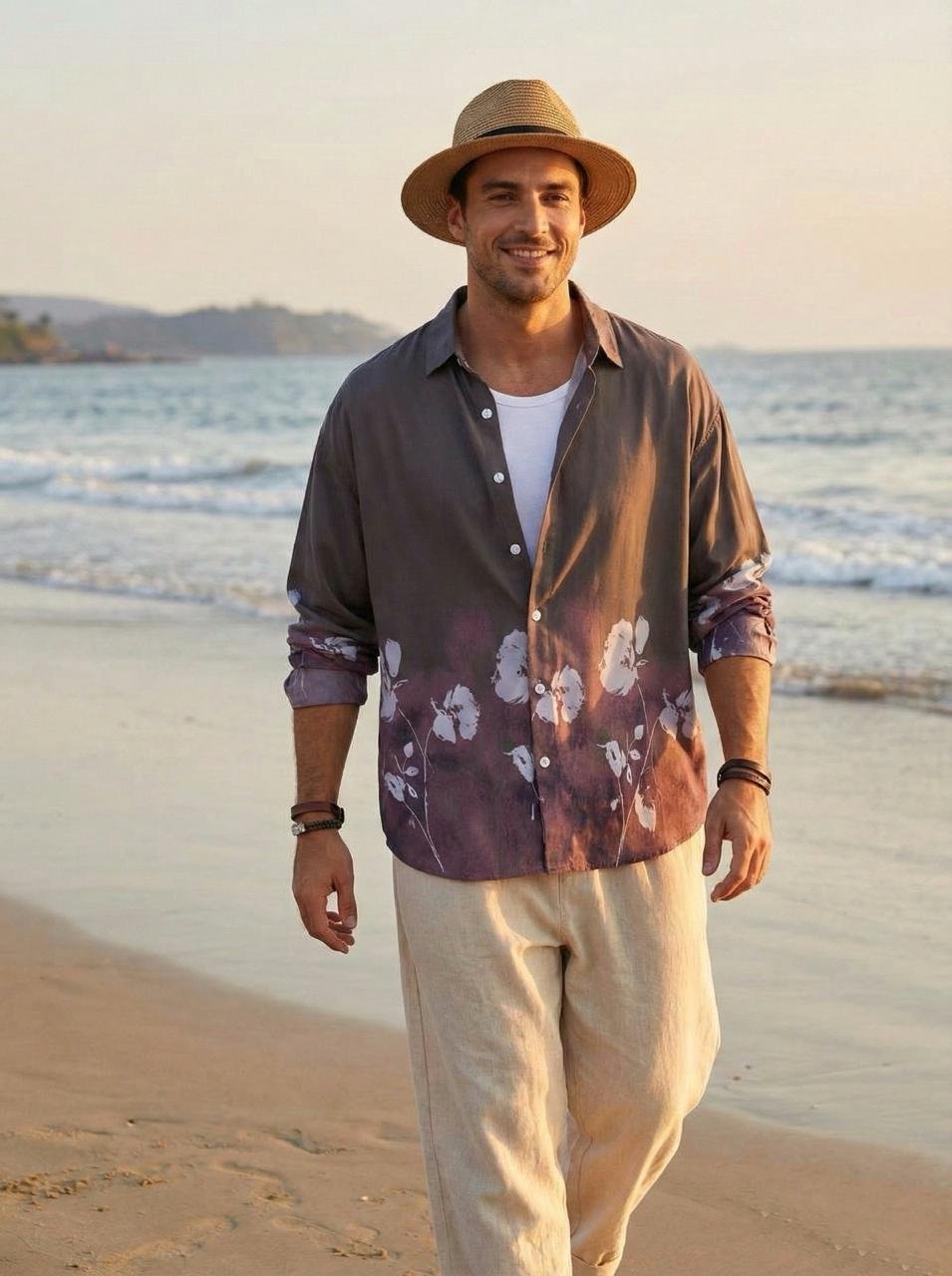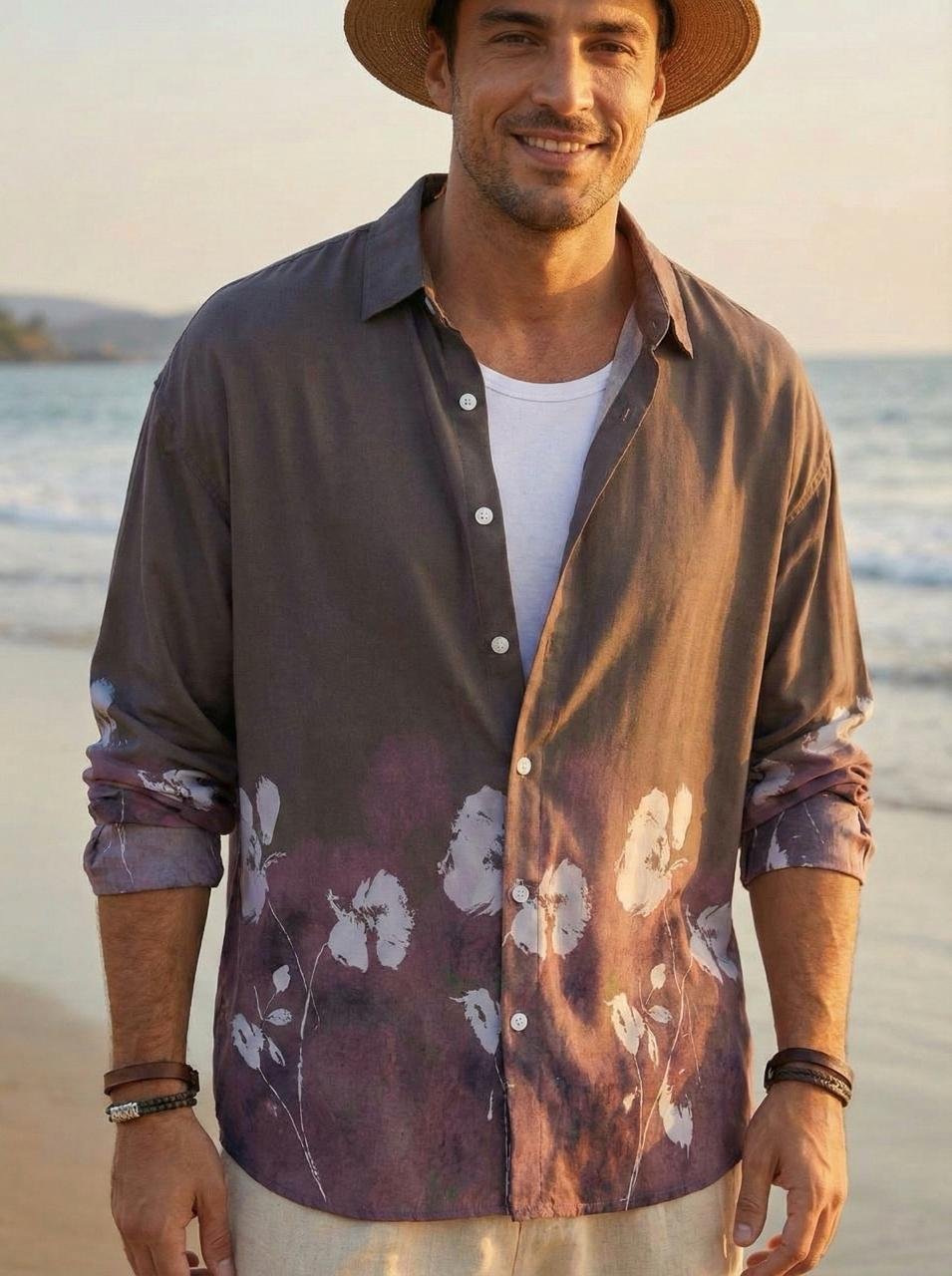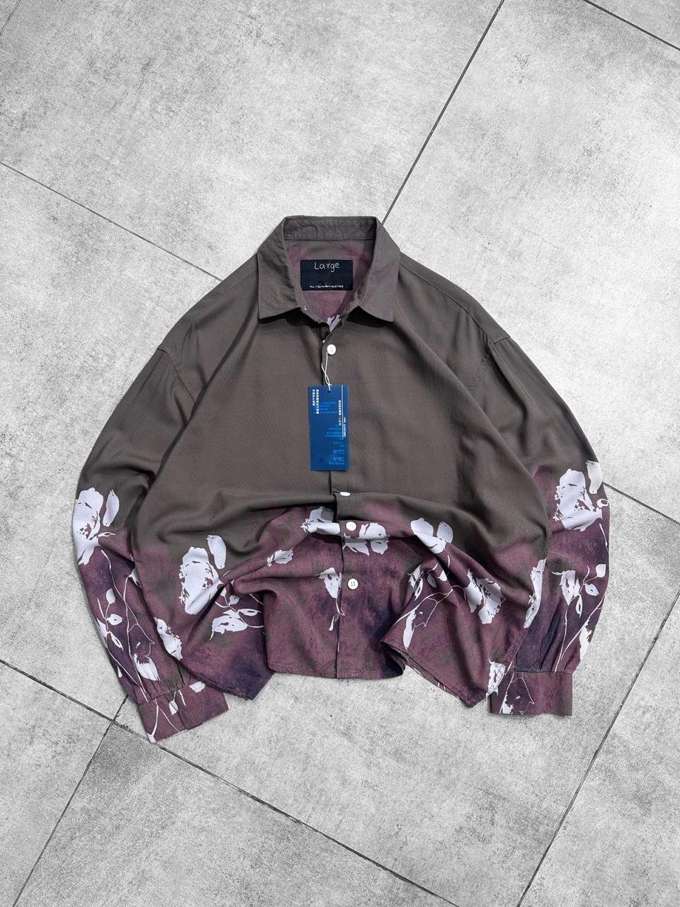 Flower Printed Rayon Shirt -Brown