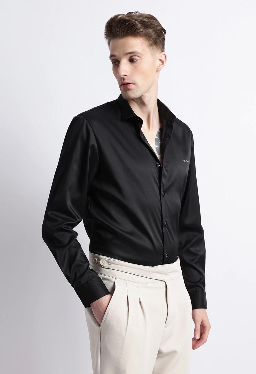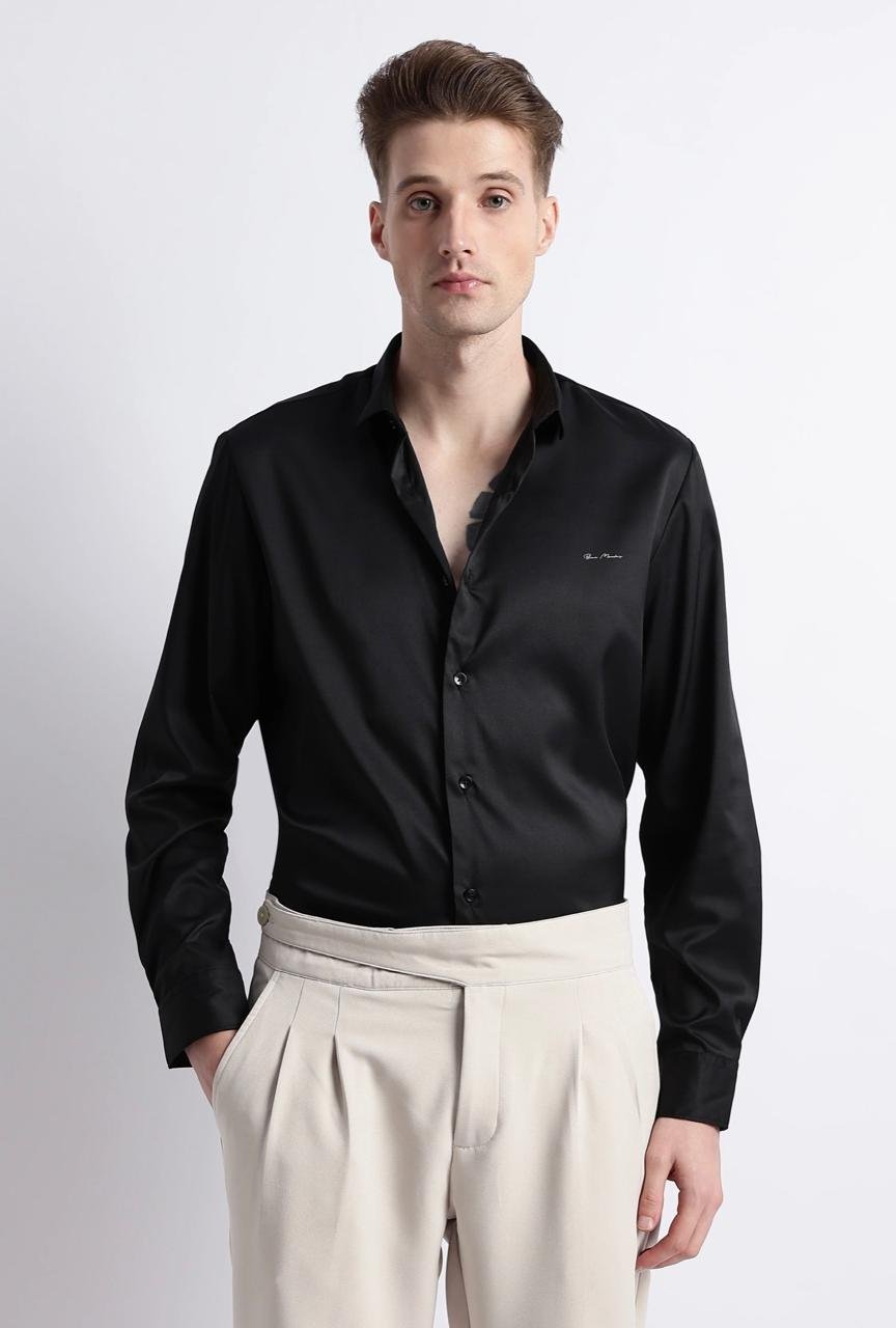 Plain Satin Shirt-Black