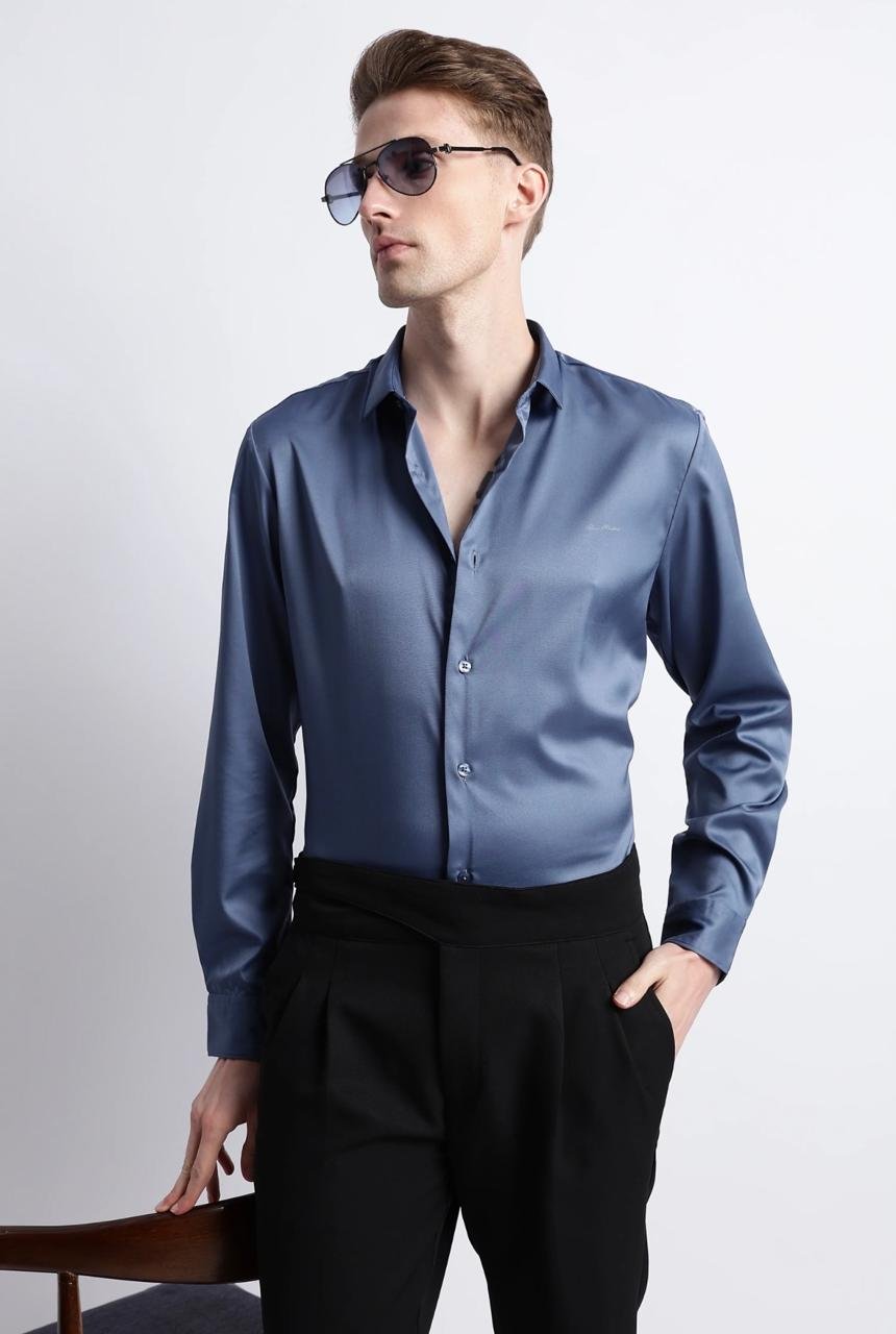 Plain Satin Shirt- Blue