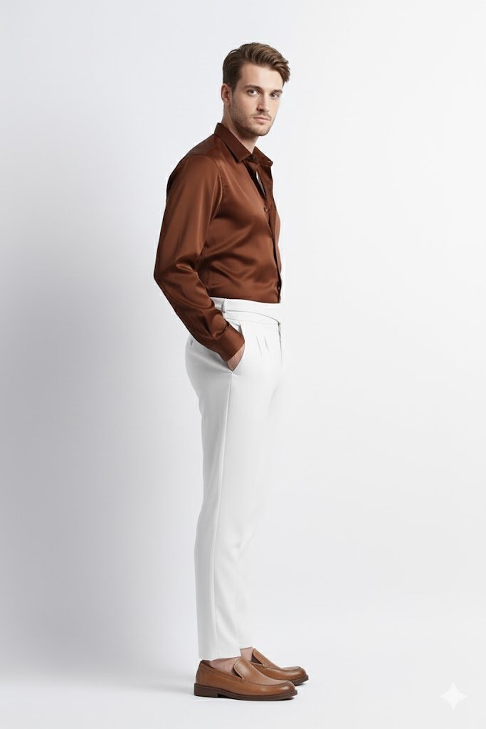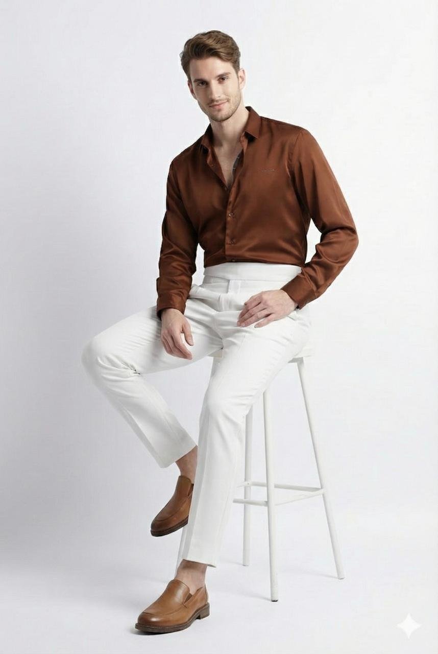 Plain Satin Shirt-Brown