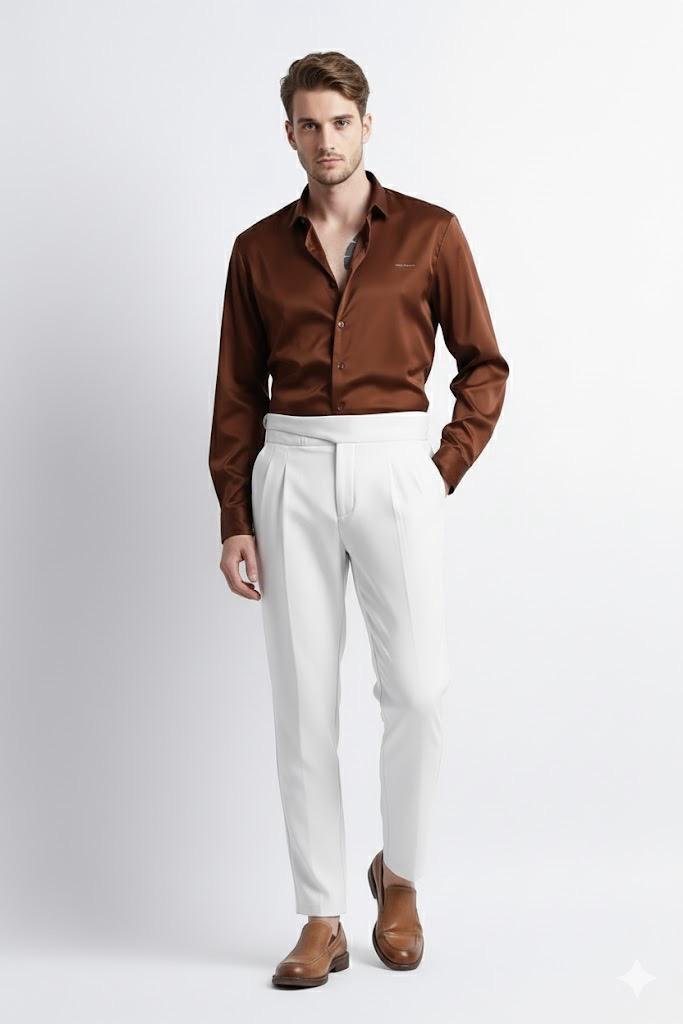Gangster Plain Satin Shirt-Brown
