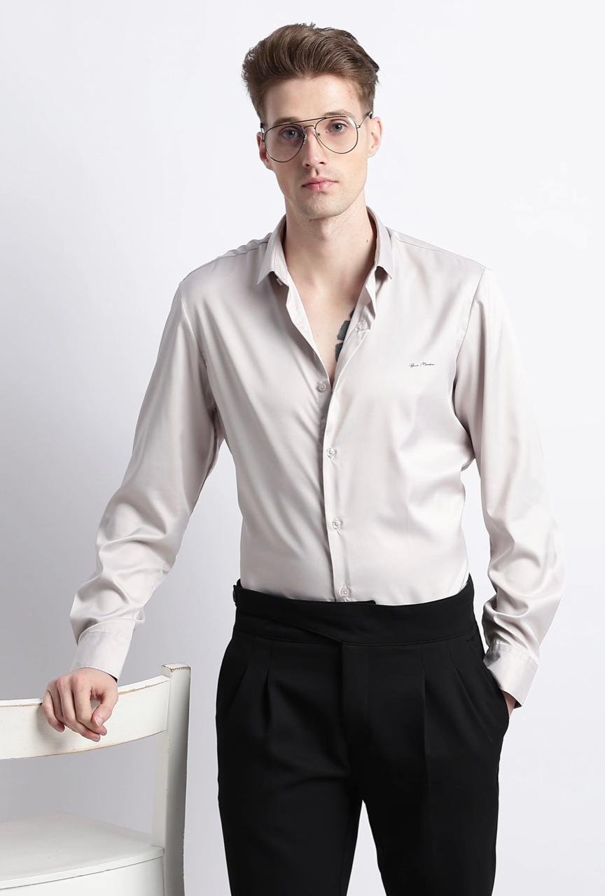 Gangster Plain Satin Shirt- Off White