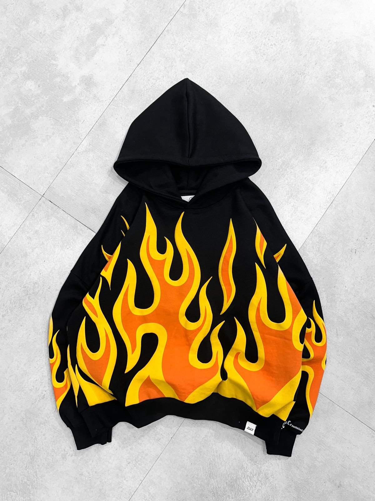 Turn up the heat with the “Inferno” Oversized Hoodie. Featuring a bold wraparound flame graphic, extreme drop shoulders, and a heavy streetwear fit.