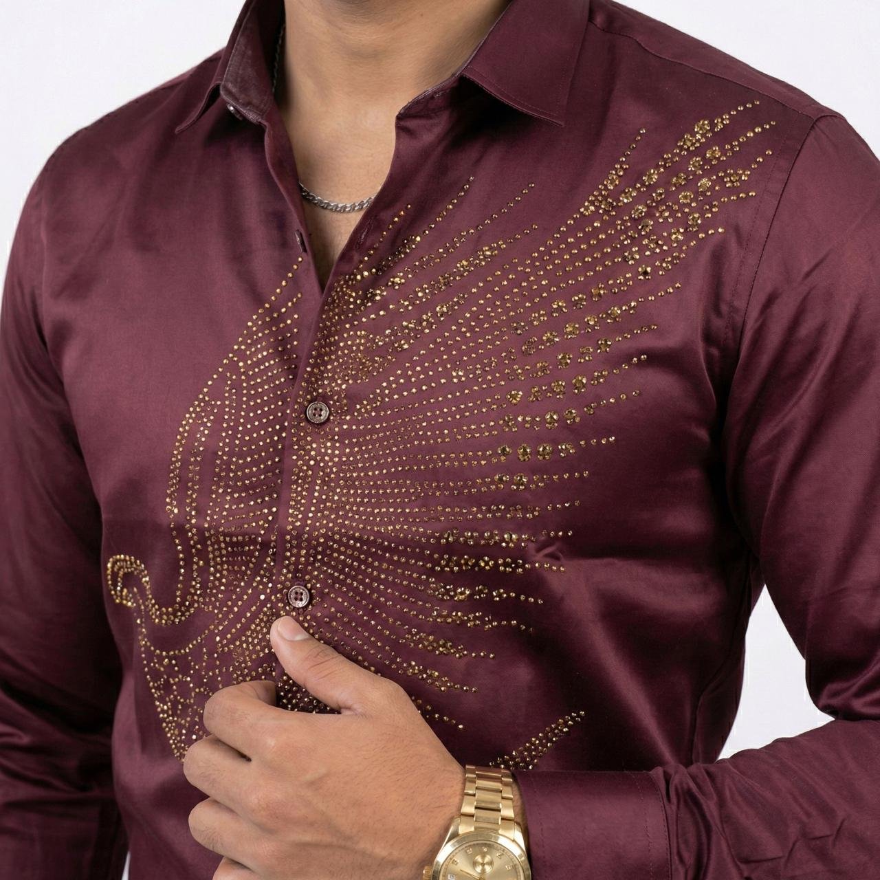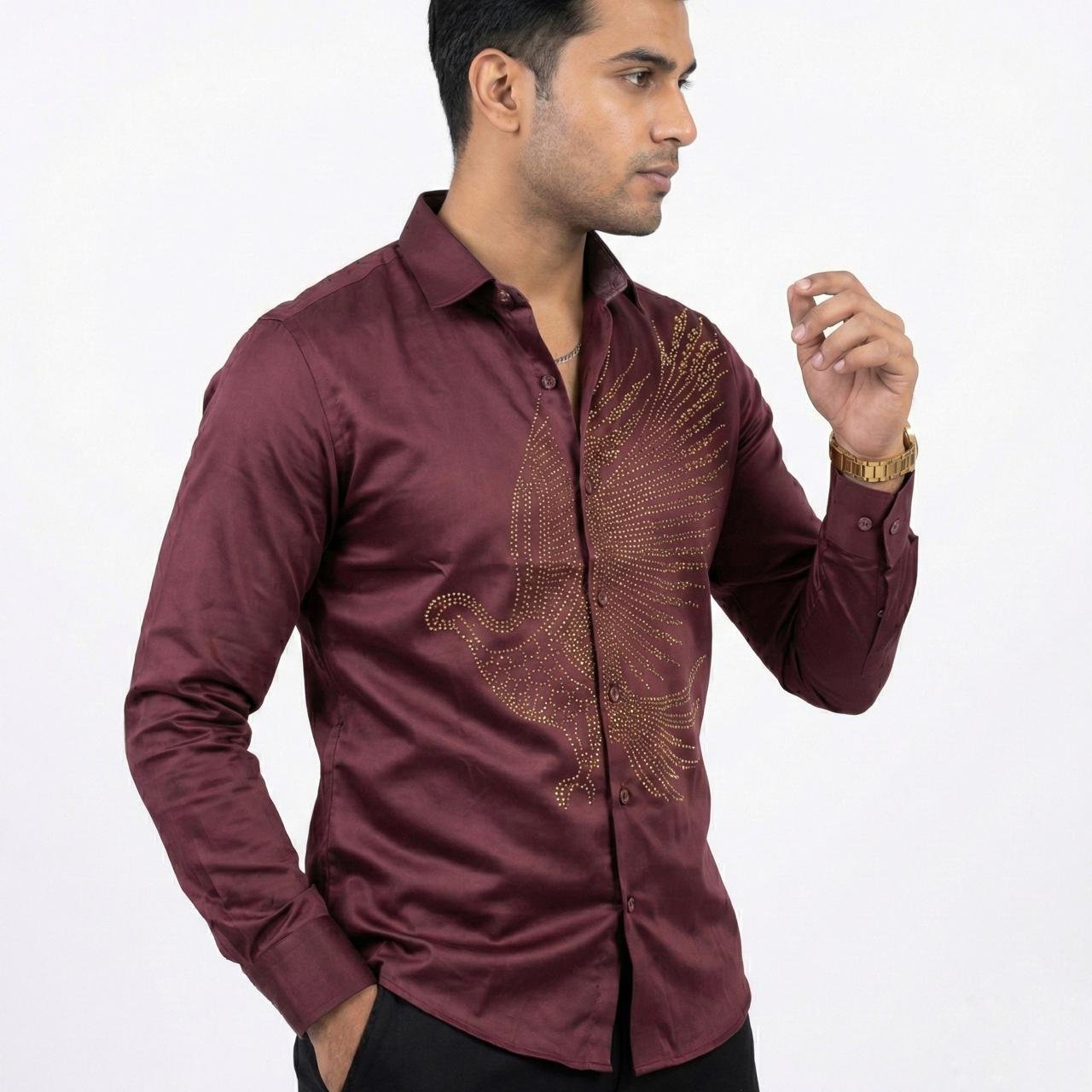 - Perfect for parties, weddings, night events, and upscale occasions, the Imperial Phoenix Studded Shirt blends modern design with timeless sophistication—ideal for standing out without saying a word.