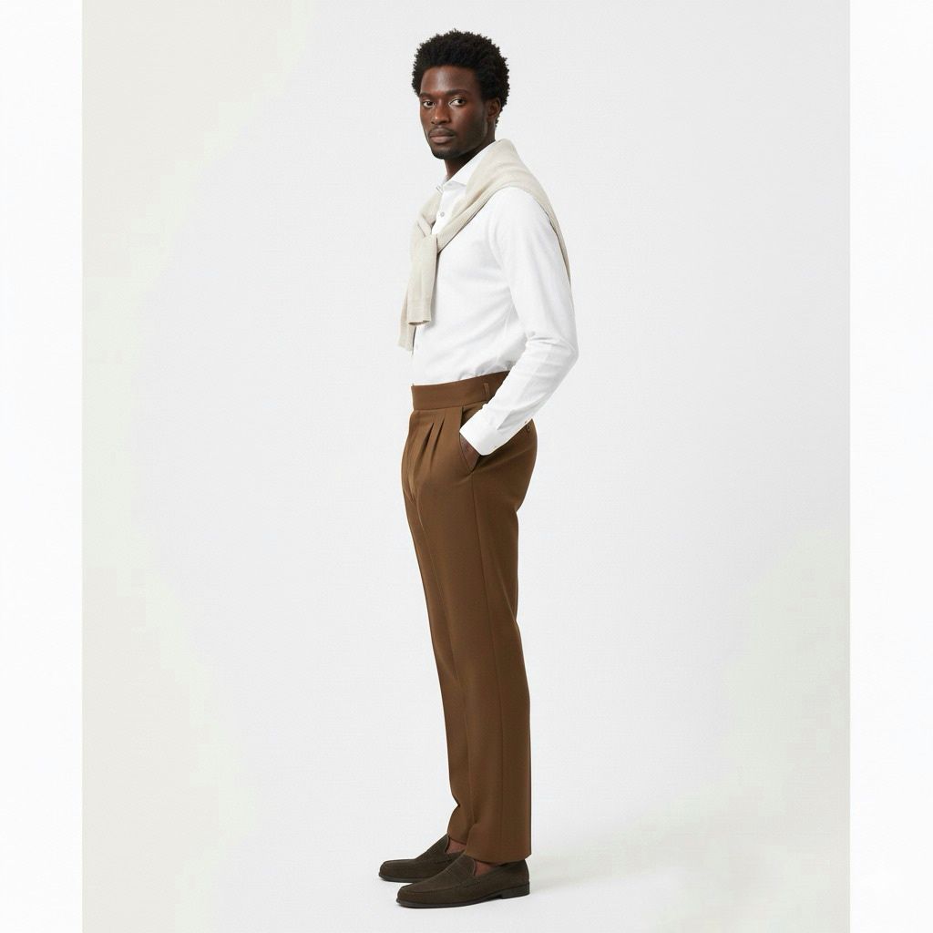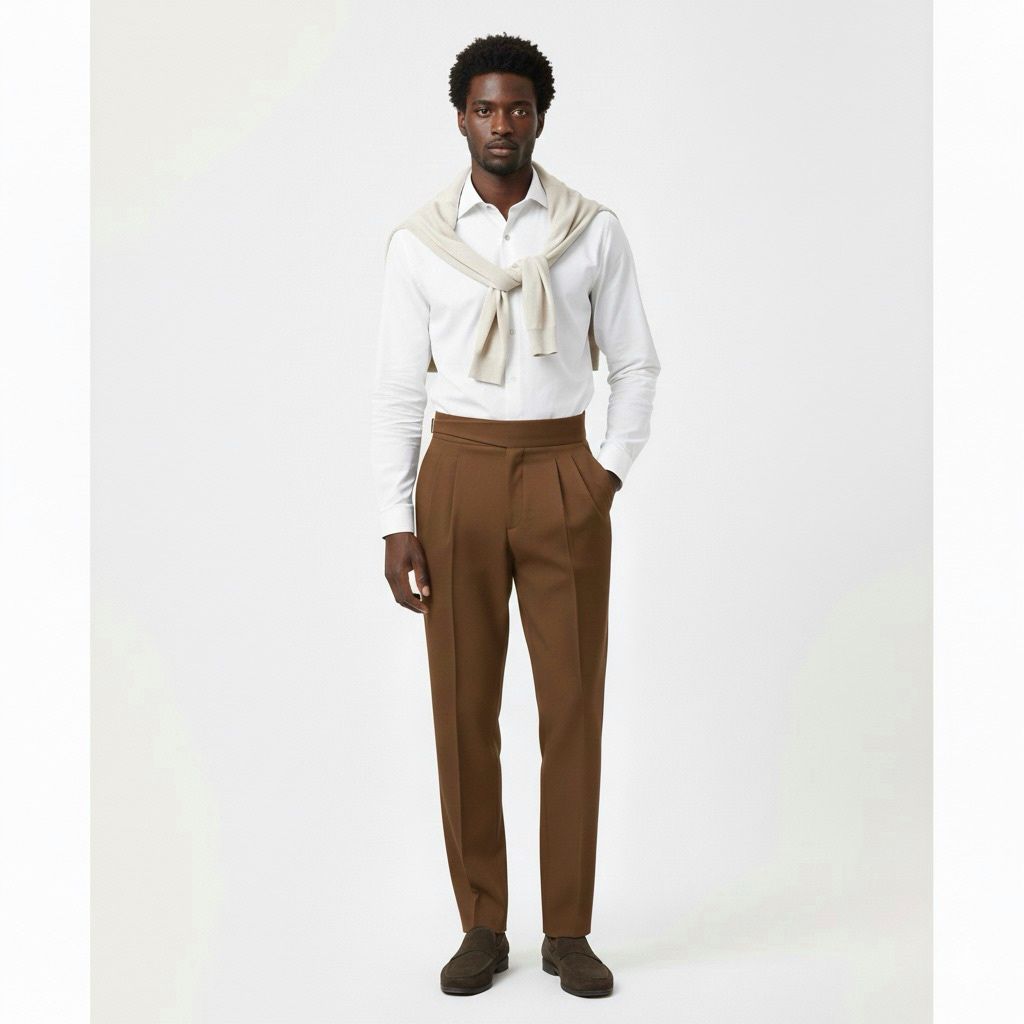 Brown Italian Style Formal Gurkha Pants: Elevate your formal and party wear with a modern, elegant twist. Featuring the signature high-waist and double buckle closure, these trousers offer unmatched comfort and sophisticated fit for any occasion.