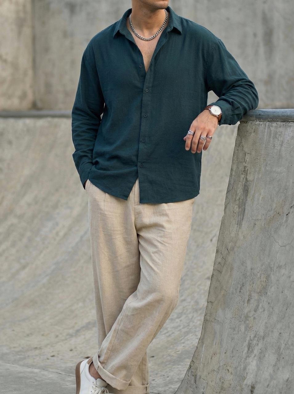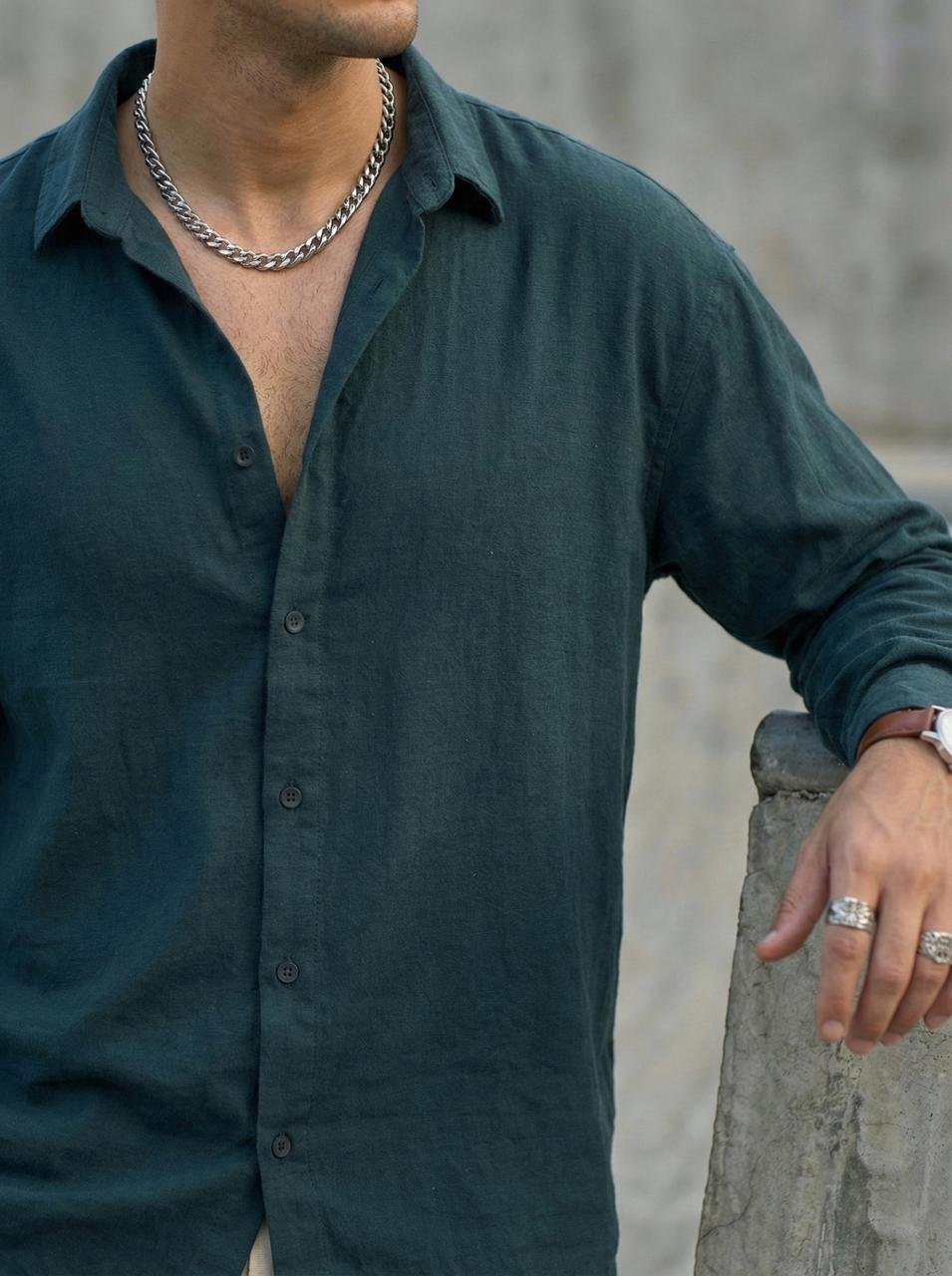 Dark Teal Linen Oversize Shirt Experience ultimate comfort in this breathable, textured linen-blend shirt. Featuring a soft collar, tonal buttons, and a relaxed boxy fit, it’s the ideal piece for a minimalist, high-fashion aesthetic.