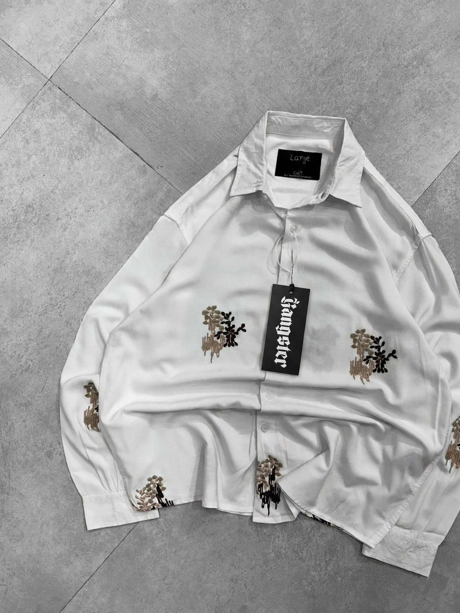 A stylish shirt featuring intricate floral embroidery that adds a refined artistic touch. Designed with a relaxed silhouette, it offers a perfect balance of modern elegance and smart-casual versatility.