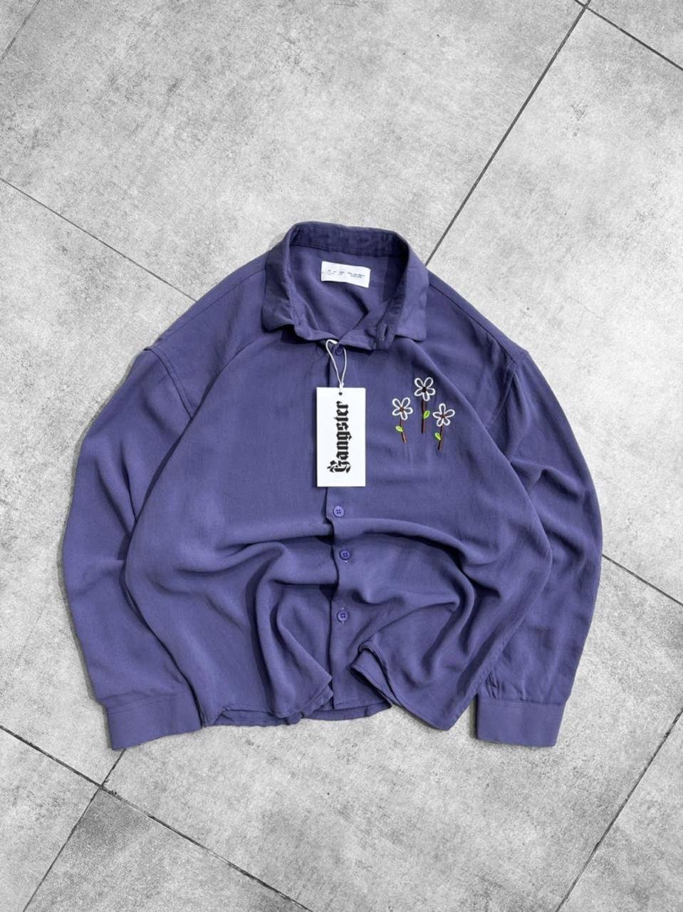 Minimal Floral Chest Embroidery DropShoulder Shirt- lavender