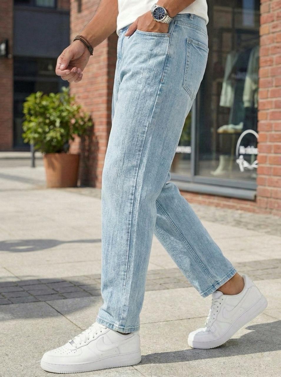 - “Discover these men’s Gangster brand jeans in a unique dark charcoal wash. This denim features distinct vertical striation and distressed fading for a rugged, lived-in look. Perfect for adding texture to casual urban outfits. Authentic Gangster tags included.”
