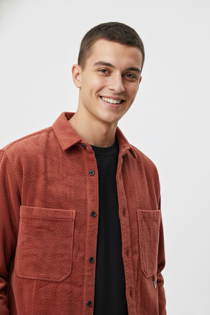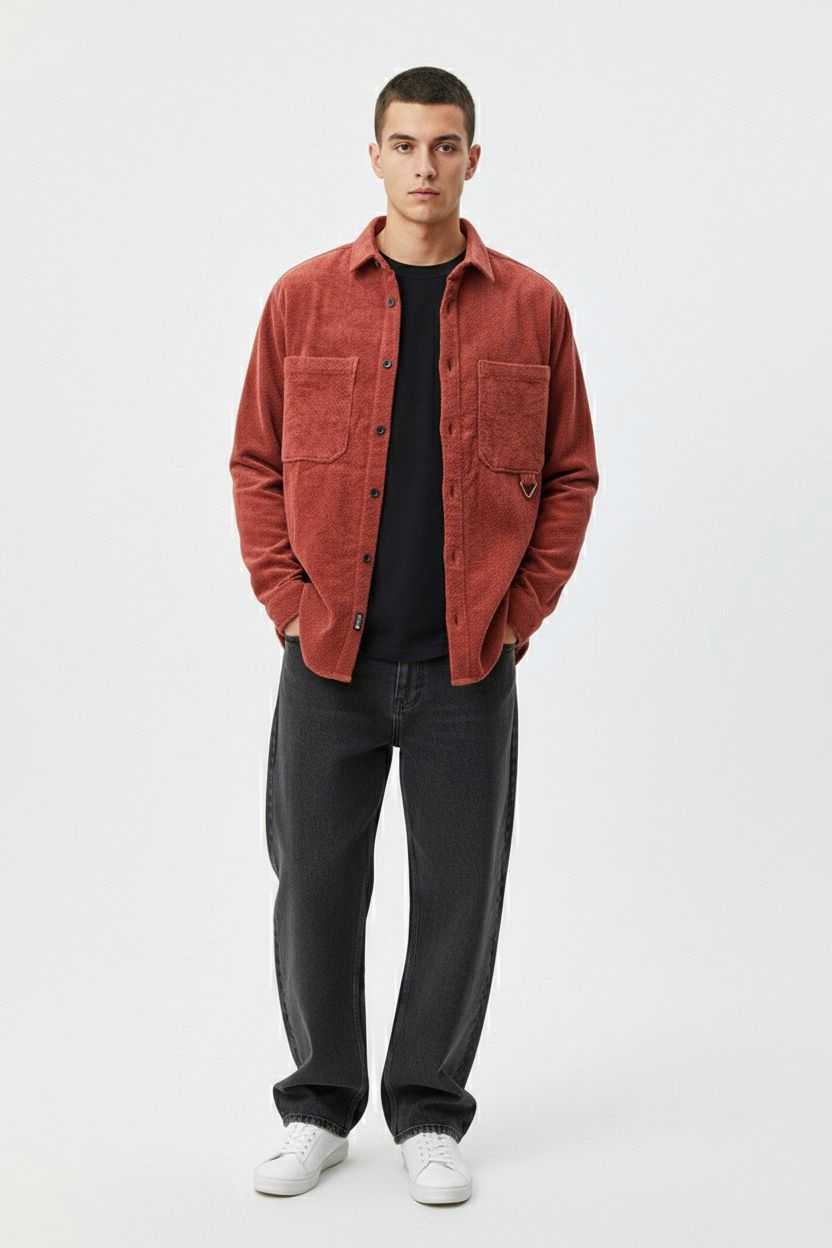 Pockets: There are two large chest pockets with flaps, adding a utility or workwear element to the design.
