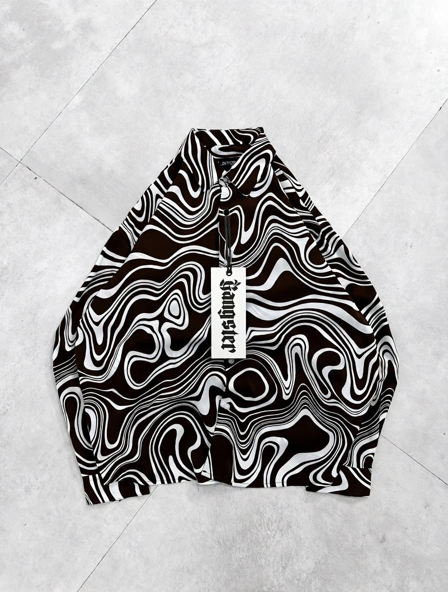 Turn heads with this bold streetwear essential. The Optical Illusion Op-Art Shirt features a striking black-and-white wave pattern that creates a dynamic, eye-catching effect. Designed for those who like to stand out, this shirt blends artistic expression with everyday wearability. The relaxed silhouette and smooth fabric make it comfortable for all-day wear, while the button-up style keeps it versatile—dress it up or keep it casual.