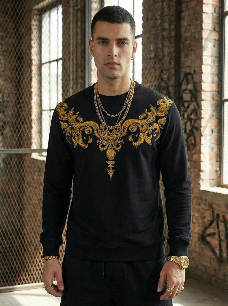 • Men’s black sweater showcasing an elaborate, Tigher graphic across the back. Stand out with this dramatic, eye-catching design.