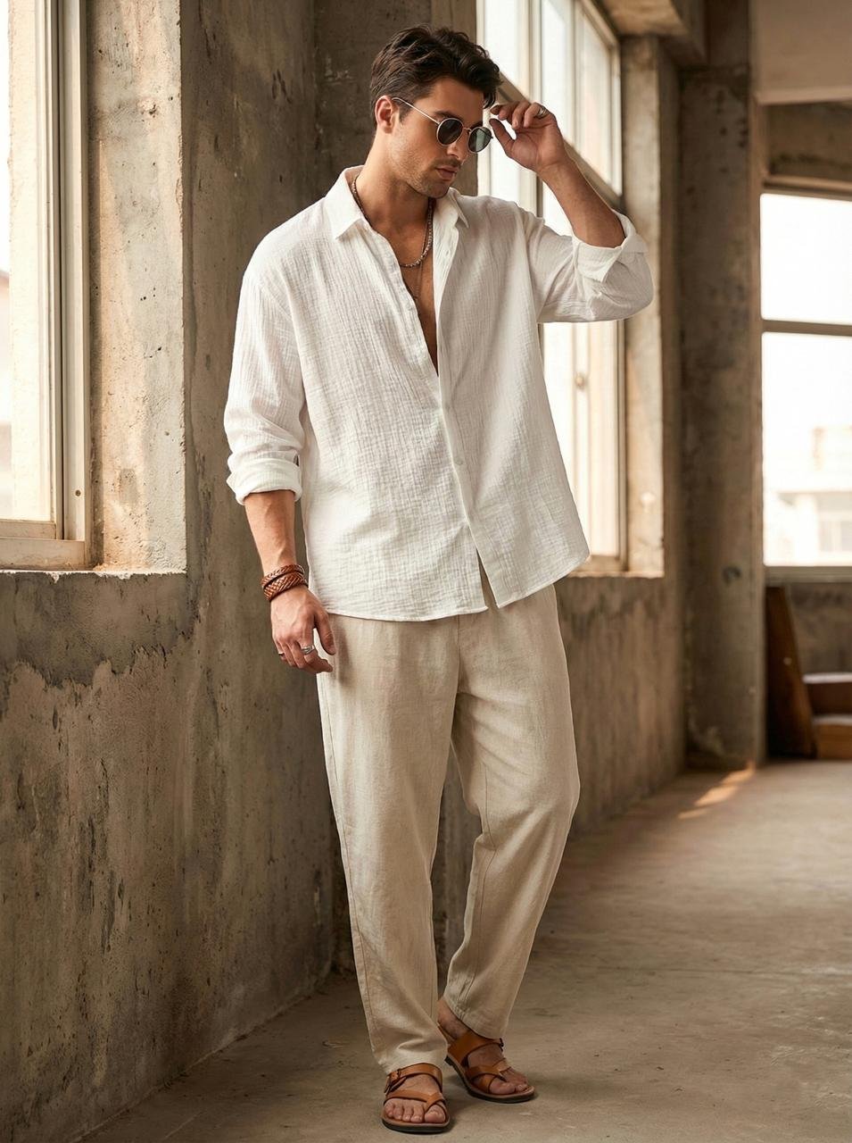 • Bone White Experience ultimate comfort in this breathable, textured linen-blend shirt. Featuring a soft collar, tonal buttons, and a relaxed boxy fit, it’s the ideal piece for a minimalist, high-fashion aesthetic.