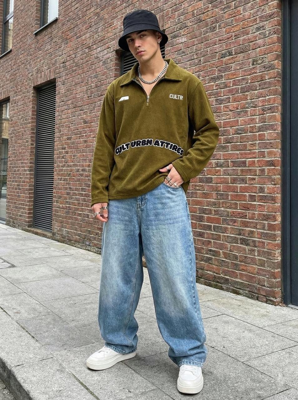 • This premium Olive Green pullover features a distinct vertical ribbed texture and a versatile metallic half-zip collar for a modern.it’s the perfect blend of cozy comfort and urban edge.