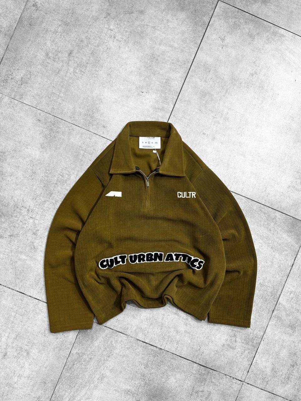 Quarter-Zip Ribbed Sweatshirt – Olive Green