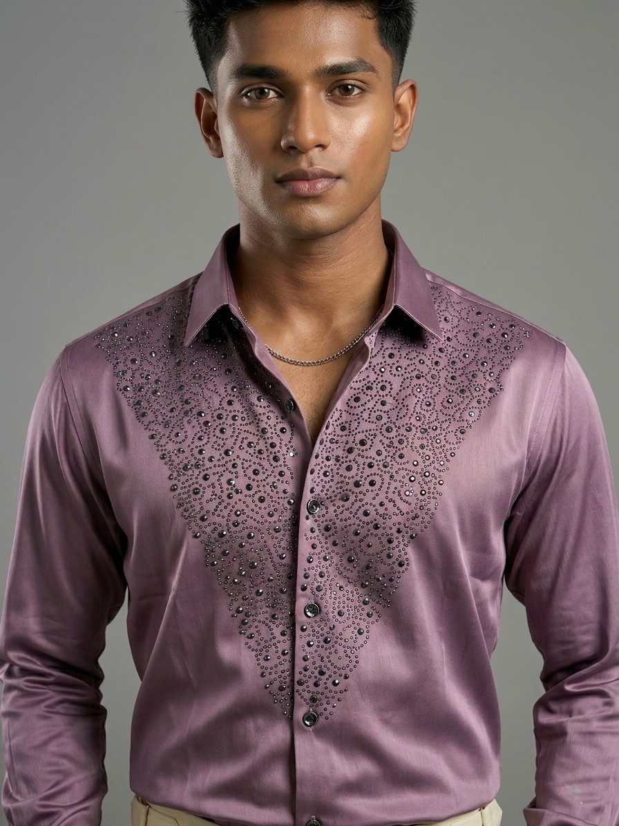 “The Royal Amethyst” Embellished Designer Shirt