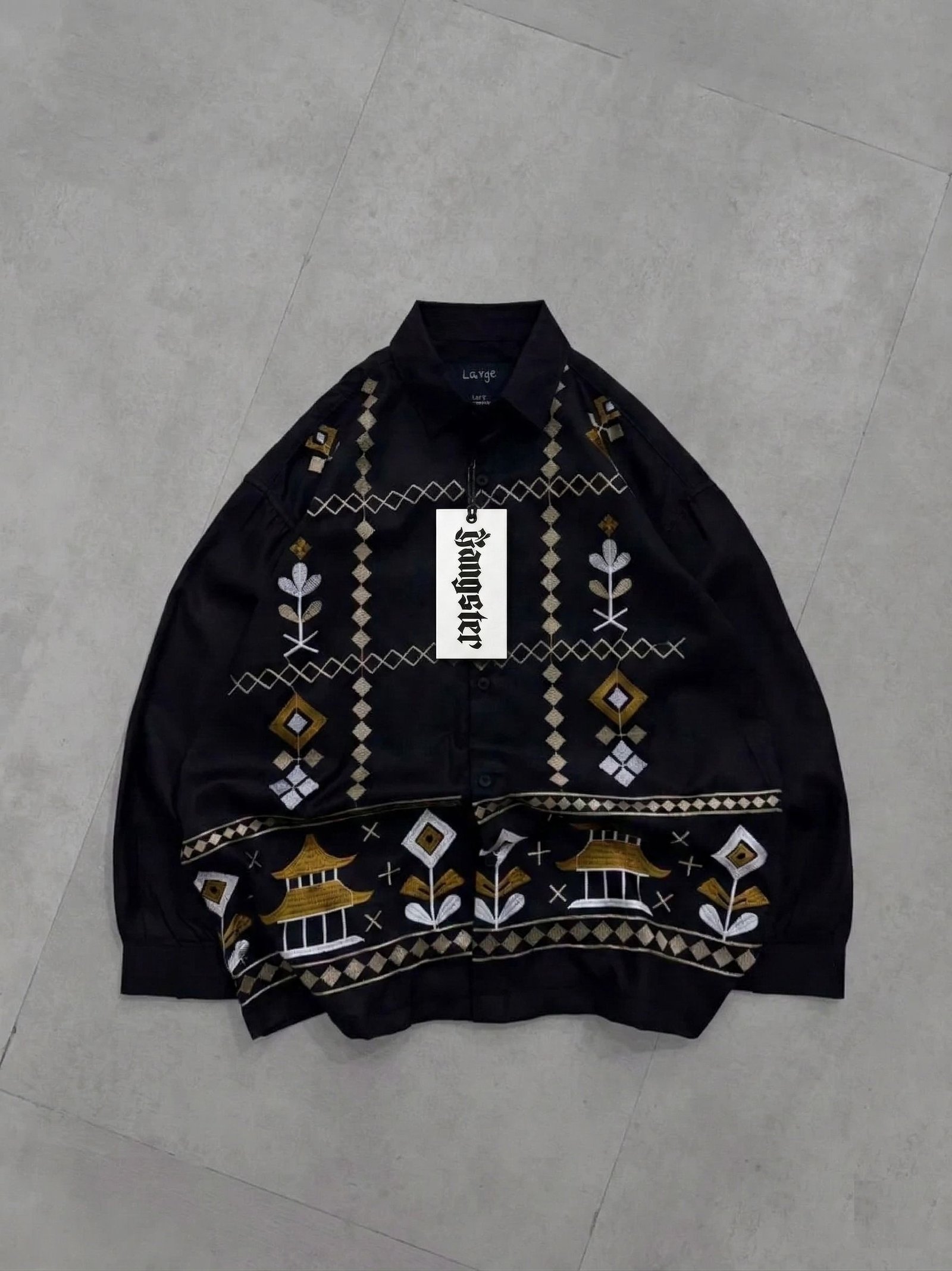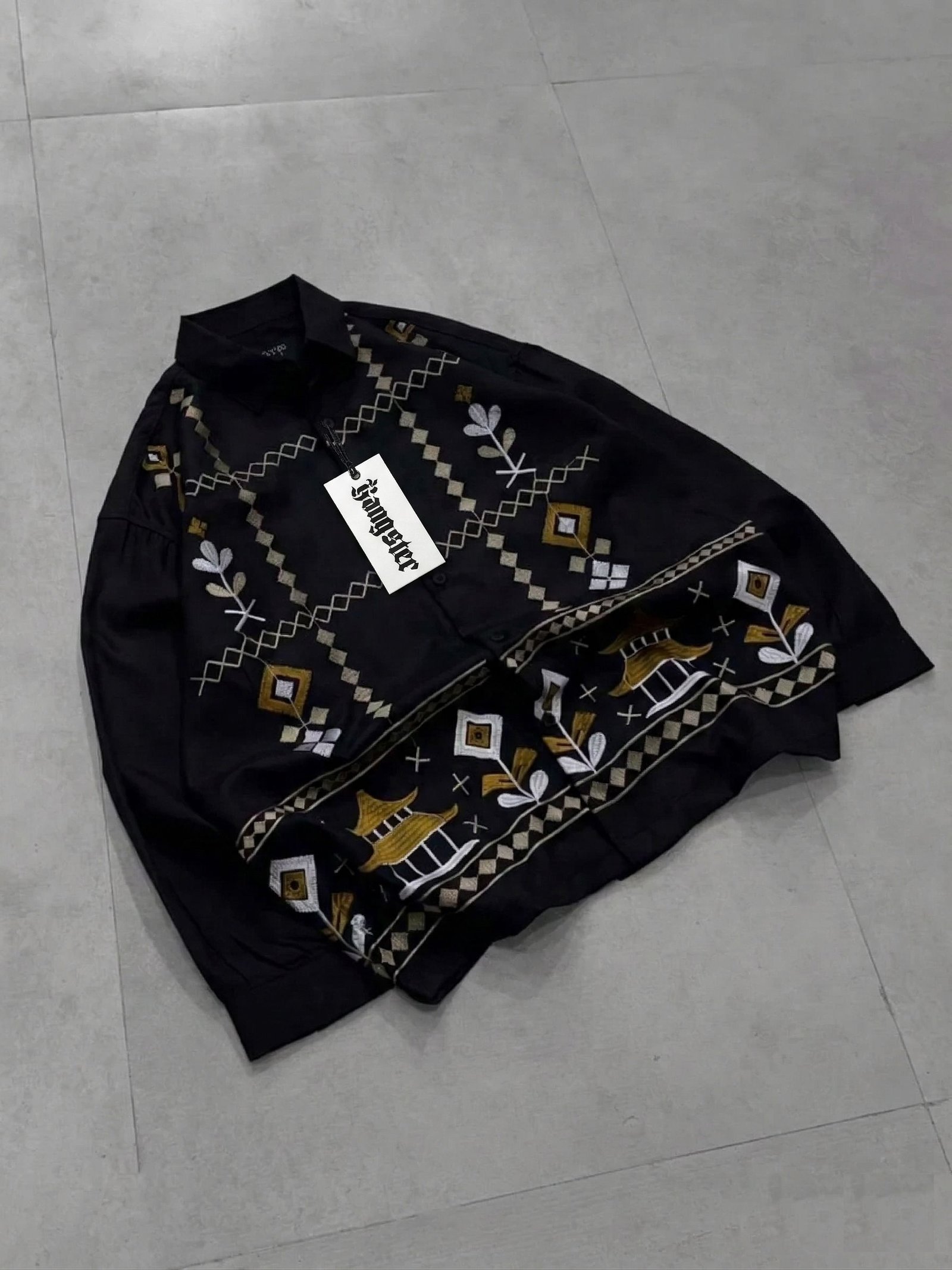 Step into refined street style with the Urban Heritage Embroidered Shirt — a perfect blend of traditional artistry and modern fashion. Designed with intricate tribal-inspired embroidery across the front, this shirt reflects cultural roots while keeping your look sharp and contemporary.