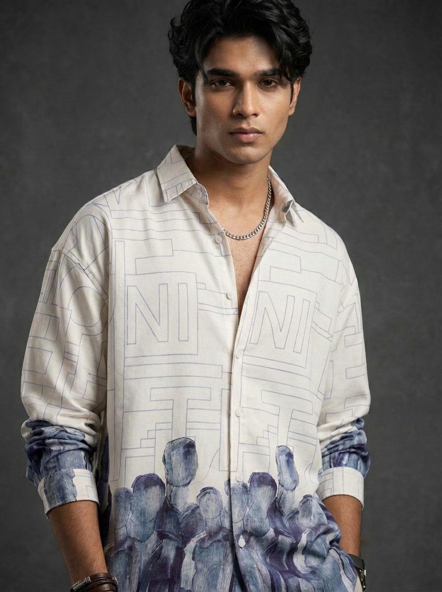 Our Urban Silhouette Statement Shirt features bold abstract prints with a relaxed dropshoulder fit. Limited stock – Upgrade your wardrobe now..