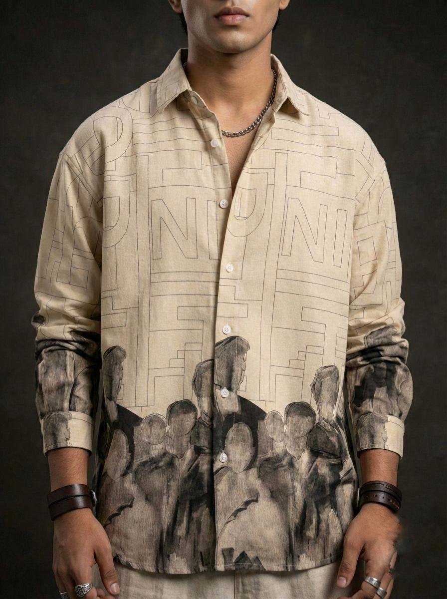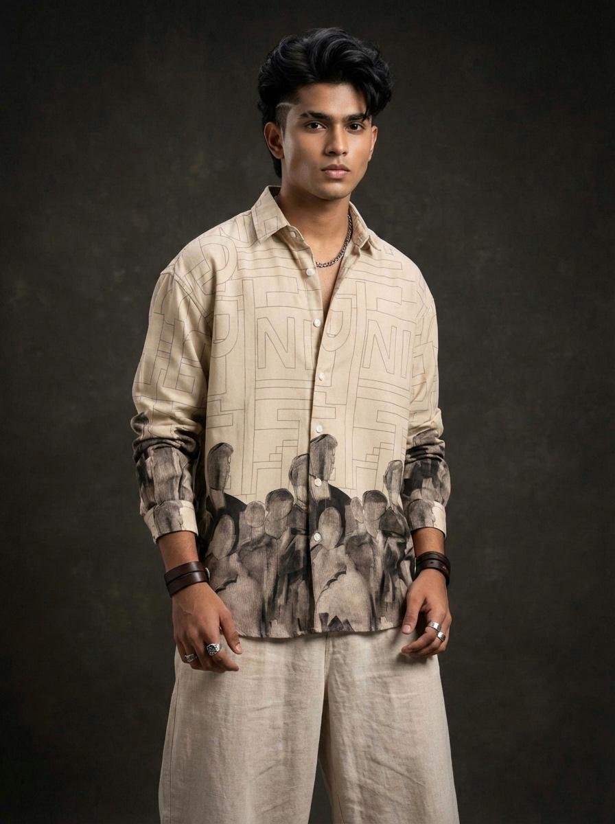 Our Urban Silhouette Statement Shirt features bold abstract prints with a relaxed dropshoulder fit. Limited stock – Upgrade your wardrobe now..