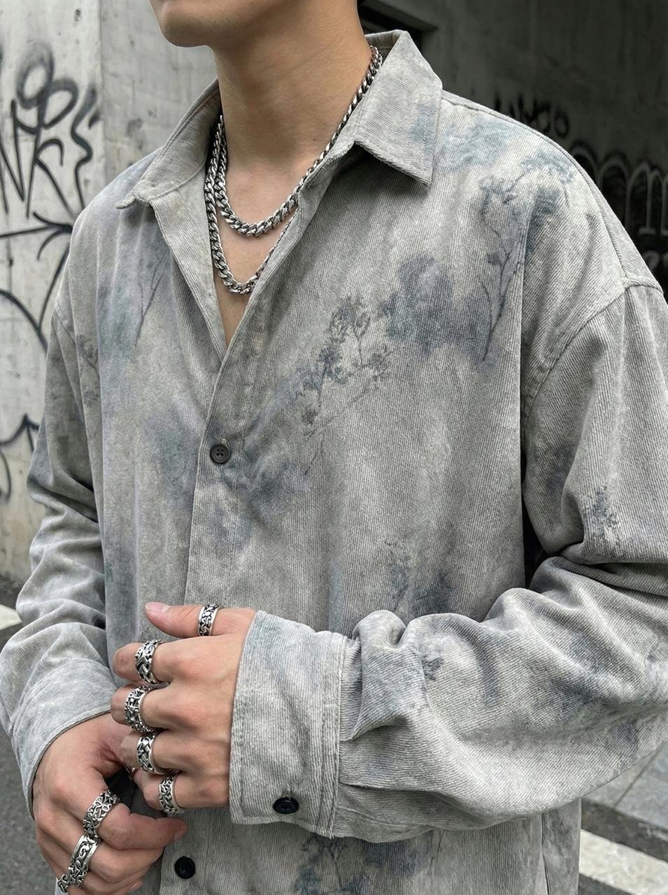 Whyte Back Printed Oversize Corduroy Shirt – Grey