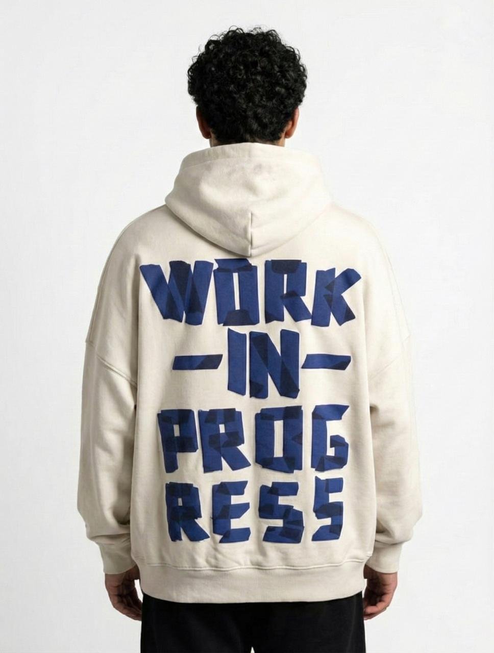 - This premium oversized streetwear hoodie features a bold blue 3D back print on off-white fabric. Elevate your fit today.”