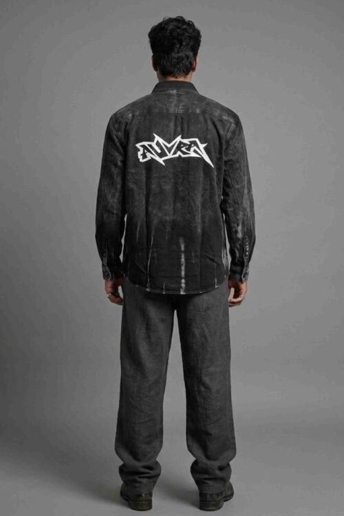 Auvra Back Printed Oversize Corduroy Shirt- Black “Shop this oversized Light tan Streetwear Shirt featuring a premium Black acid-wash finish and bold Auvra back graphic. Trendy, soft-touch button-down for an urban look.”
